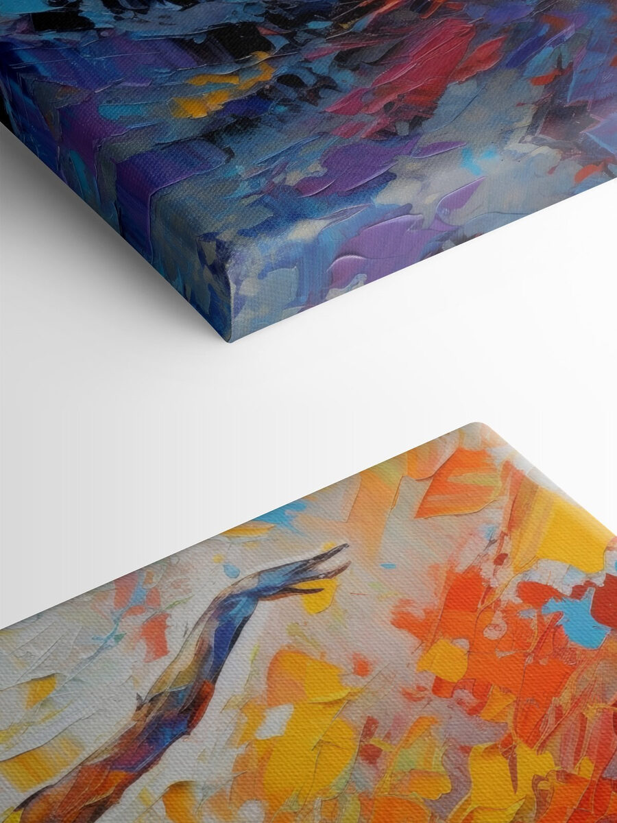 Înveseliți orice spațiu cu această imprimare încântătoare pe pânză a unei femei dansând, imortalizată într-un vârtej de culori vibrante. Este ca și cum ar fi prinsă într-un moment de bucurie pură, invitând pe oricine o privește să se alăture sărbătorii. Imaginați-vă că agățați această piesă într-o cameră de zi sau într-un studio – dintr-o dată, pereții se simt plini de viață. Mișcările ei fluide pot inspira creativitatea sau pur și simplu vă pot ridica starea de spirit. Este un memento perfect pentru a îmbrățișa ritmul vieții. Fie că sorbiți cafea sau găzduiți prieteni, această operă de artă adaugă un strop de energie fiecărui moment.