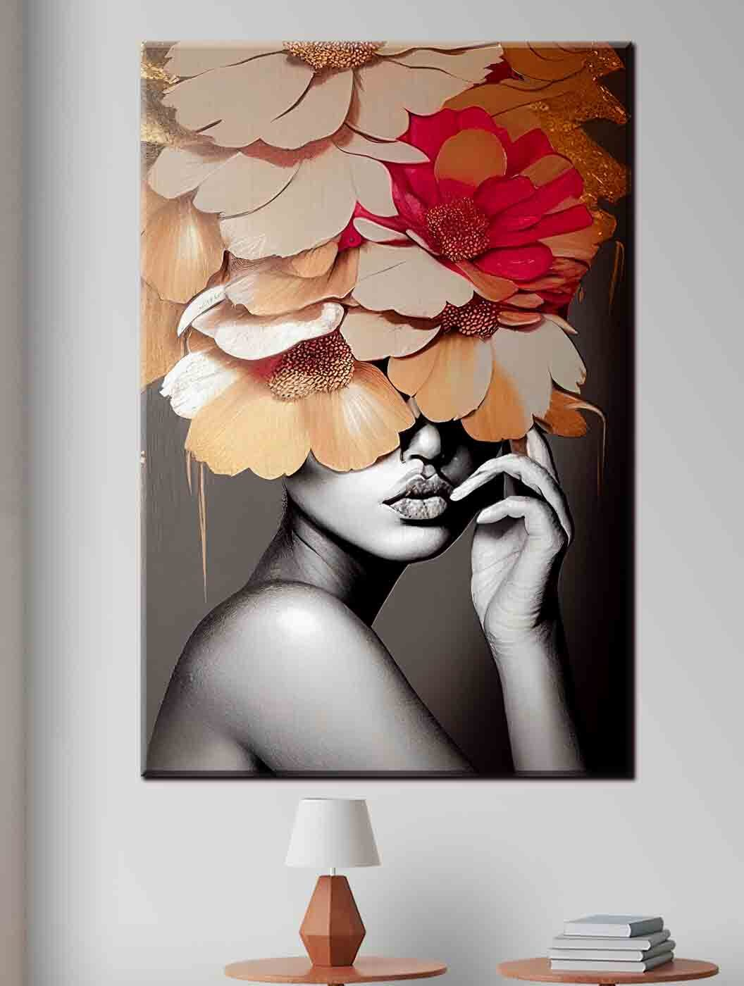 Înveseliți orice spațiu cu această imprimare încântătoare pe pânză a unei femei împodobite cu flori vibrante. Este ca și cum ar purta o grădină pe cap – cât de amuzant este asta? Această operă de artă îmbină fără efort eleganța cu o notă de fantezie, ceea ce o face un subiect de conversație fabulos la următoarea dvs. întâlnire.