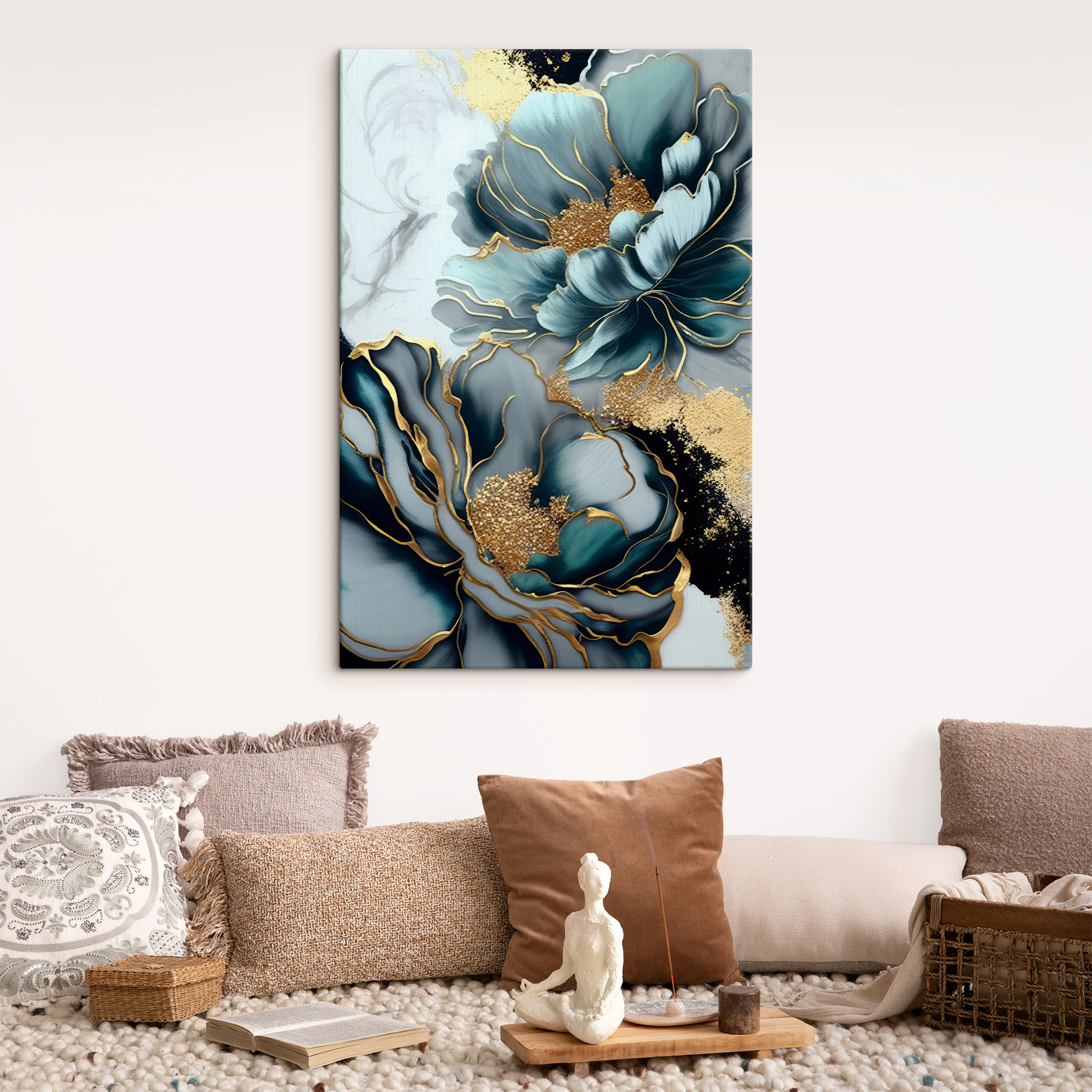 Transformați orice perete într-un paradis înflorit cu această imprimare pe pânză cu opere de artă florale elegante. Imaginați-vă că intrați într-o cameră și vă simțiți instantaneu înălțați de aceste flori luxuriante, stropite cu accente subtile de culoare care atrag privirea. Este ca o gură de aer proaspăt pentru spațiul tău, făcându-l să se simtă în același timp primitor și sofisticat. Fie că împodobește o cameră de zi sau luminează un colț de lectură confortabil, această piesă va stârni cu siguranță conversații. Cine nu ar vrea să discute despre florile uimitoare care par să danseze cu viața? Adăugați o notă de natură decorului dvs. și lăsați-o să își desfășoare frumusețea – la fel ca un buchet pe care nu doriți să îl terminați niciodată. În plus, este o încântare pentru ochi care s-ar putea să vă facă să uitați de grămada de rufe care vă privește!