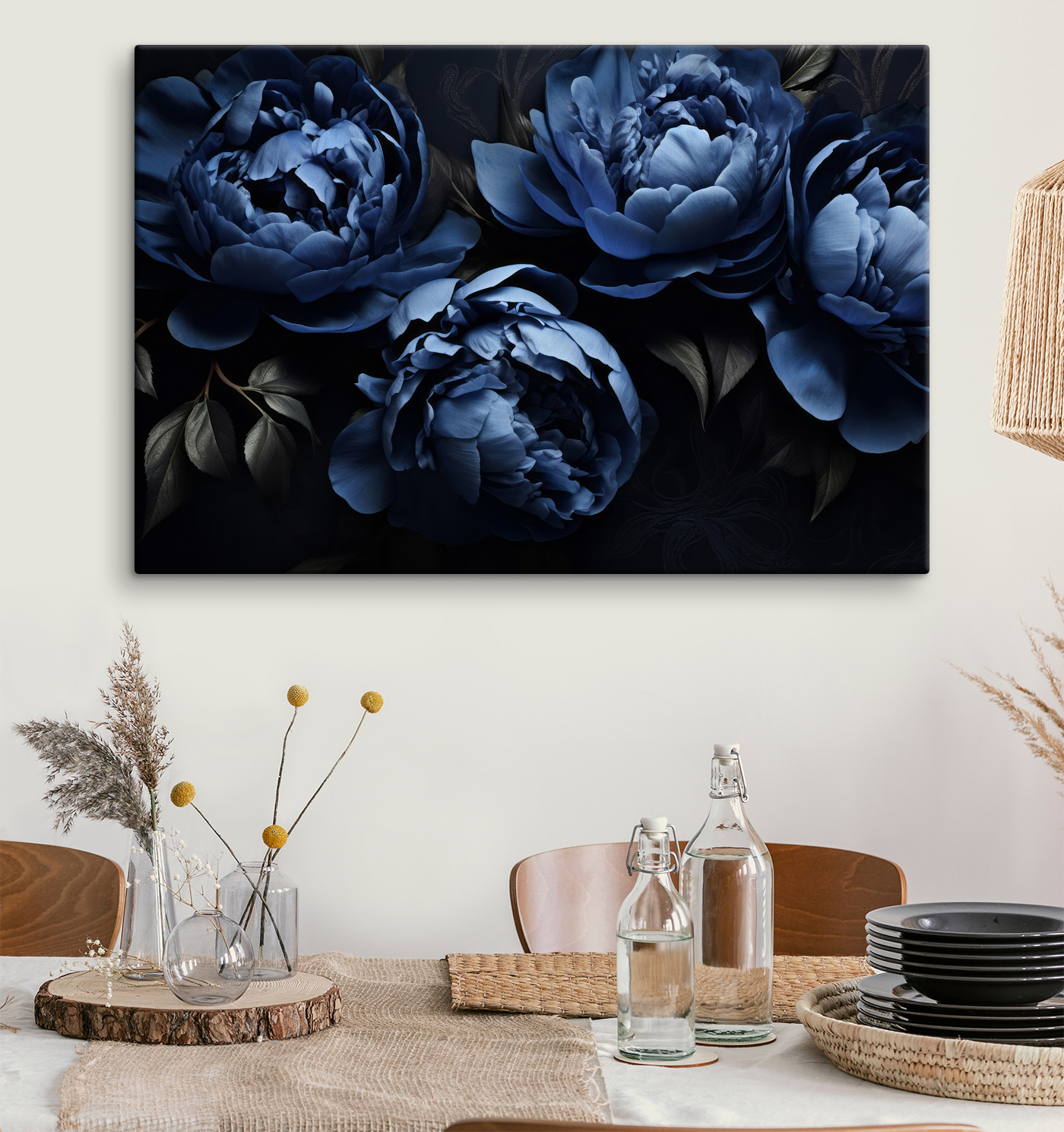 Imaginează-ți asta atârnată pe peretele tău – “Tablouri Blue Petals with Soft Textures.” Este ca și cum te-ai scufunda într-o mare de vis cu flori albastre de fiecare dată când treci pe lângă ele. Aceste flori par aproape că se leagănă ușor, nu-i așa? Perfect pentru acel loc gol din sufragerie sau chiar de pe hol. Nuanțele de albastru intens și texturile moi au acest vibe calmant, aproape liniștitor. Ar putea fi cu ușurință piesa care stârnește conversații în timpul cinei. Și, sincer? Cine nu iubește un pic de artă inspirată din natură pentru a-și înveseli spațiul!