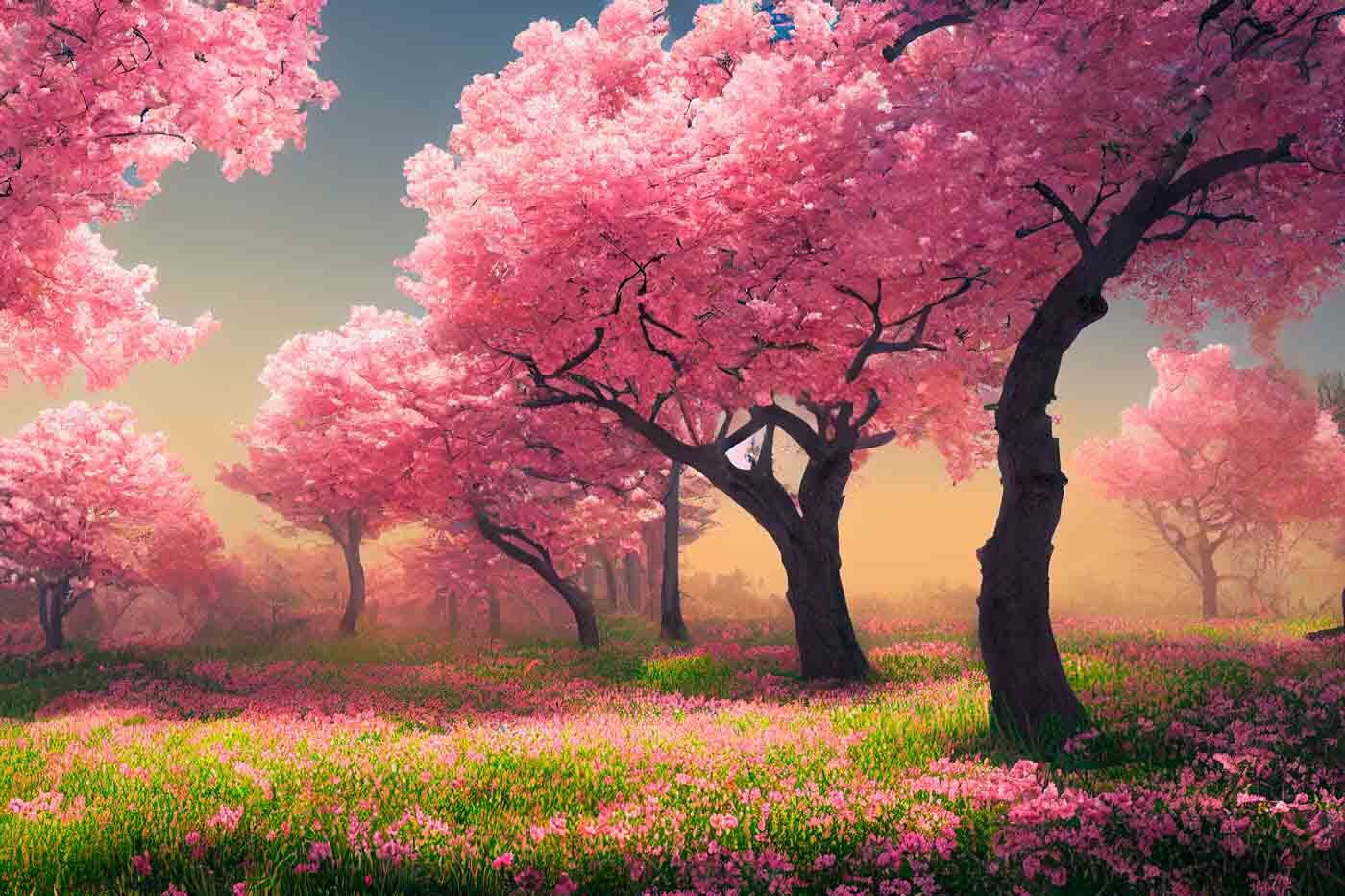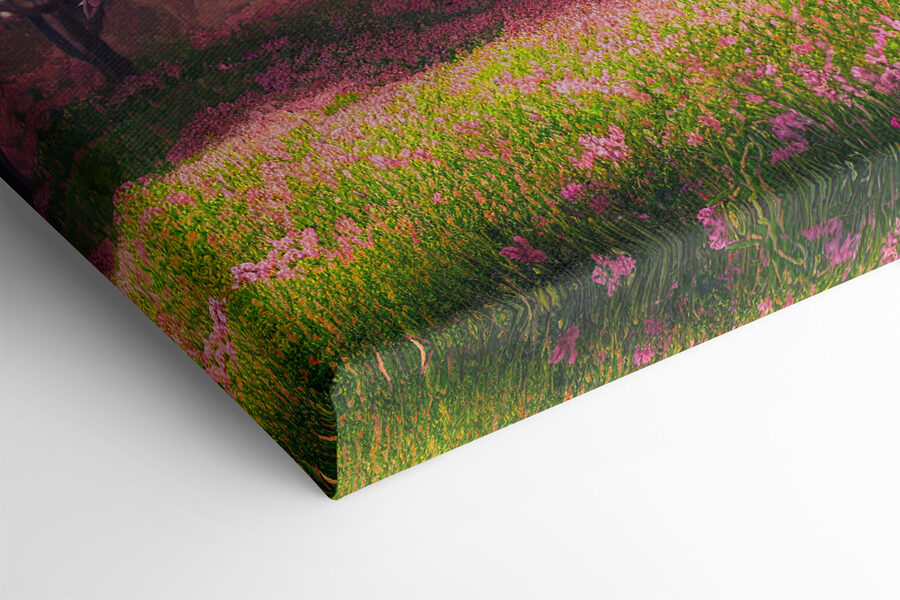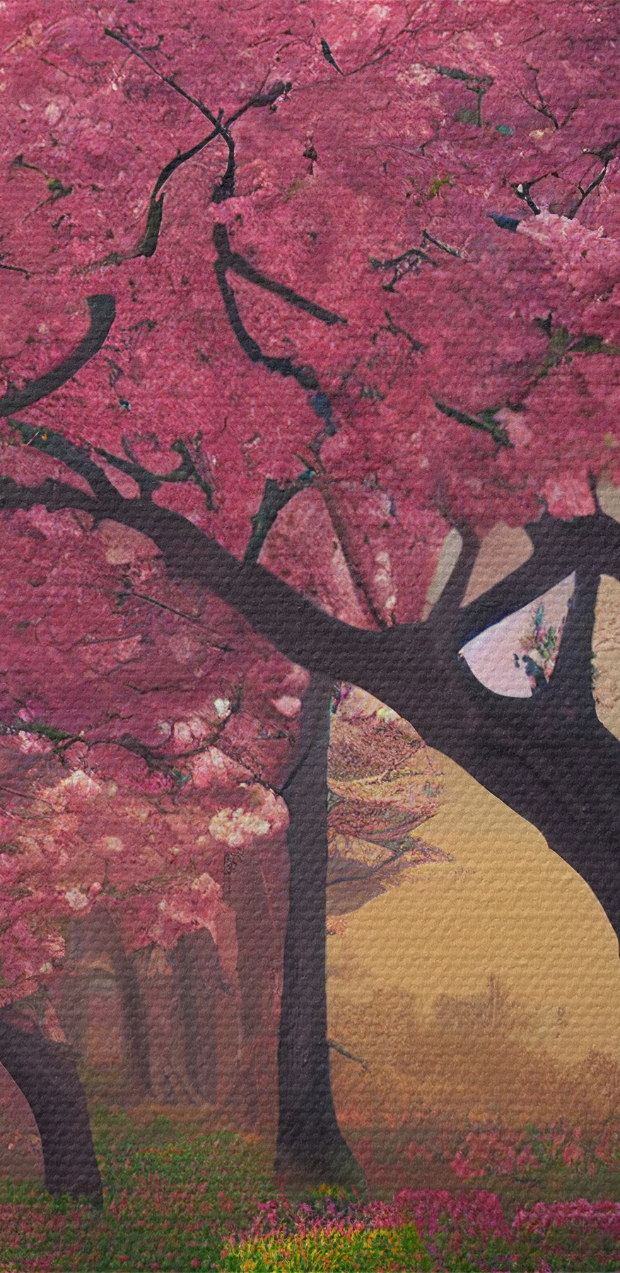 Imaginați-vă această scenă pe peretele dvs.: cireși înfloriți de un roz vibrant, cu ramuri încărcate de flori, pe fundalul unui răsărit de soare de vis (sau poate că este un apus de soare?). Acest print surprinde acel moment senin în care natura pare aproape magică. Imaginați-vă că intrați într-o cameră și simțiți acea senzație de pace și bucurie – ca o mini evadare primăvăratică, cu o explozie perfectă de culoare care va da viață oricărui spațiu.