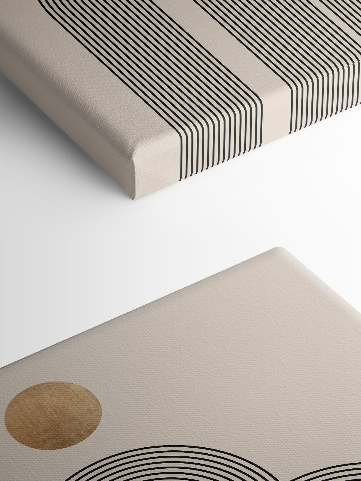 Înveseliți orice perete cu această imprimare pe pânză cu un design circular jucăuș încadrat de linii negre îndrăznețe. Este un pic ca piesa de artă modernă care te face să te gândești la marile întrebări ale vieții, în timp ce în secret vrei doar să iei o ceașcă de cafea. Fundalul neutru permite designului să iasă în evidență, făcându-l perfect potrivit pentru un colț confortabil sau chiar pentru o cameră de zi plină de viață. Imaginați-vă stând de vorbă cu prietenii sub farmecul său, sau poate găsind o stare de zen într-un moment de liniște, lăsând ritmul său să vă ghideze gândurile. Doar o modalitate simplă și captivantă de a vă înălța spațiul!