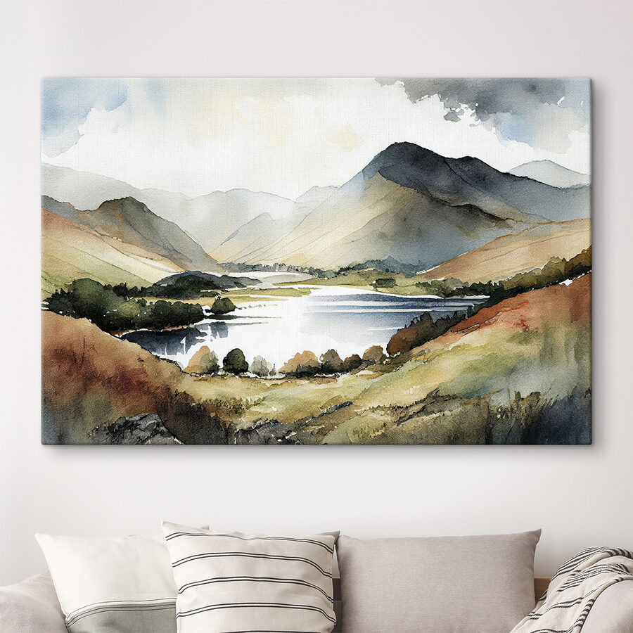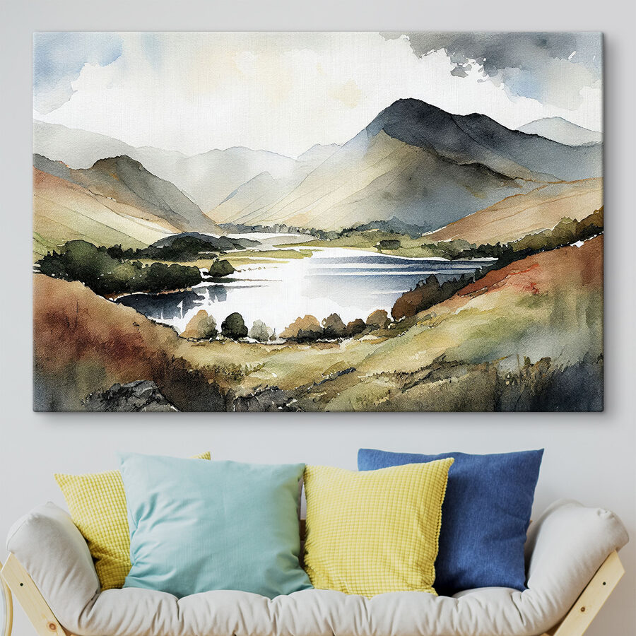 Imaginați-vă că vă treziți în fiecare dimineață cu această priveliște liniștită! Această imprimare pe pânză uluitoare surprinde un lac senin, legănat de munți maiestuoși. Realizată într-un stil moale de acuarelă, este ca o îmbrățișare blândă pentru ochii tăi – perfectă pentru a aduce o atingere a naturii în interior. Fie că sunteți un pasionat de artă sau pur și simplu vă place să vă îmbrățișați cu ceva frumos, această piesă se va potrivi perfect.