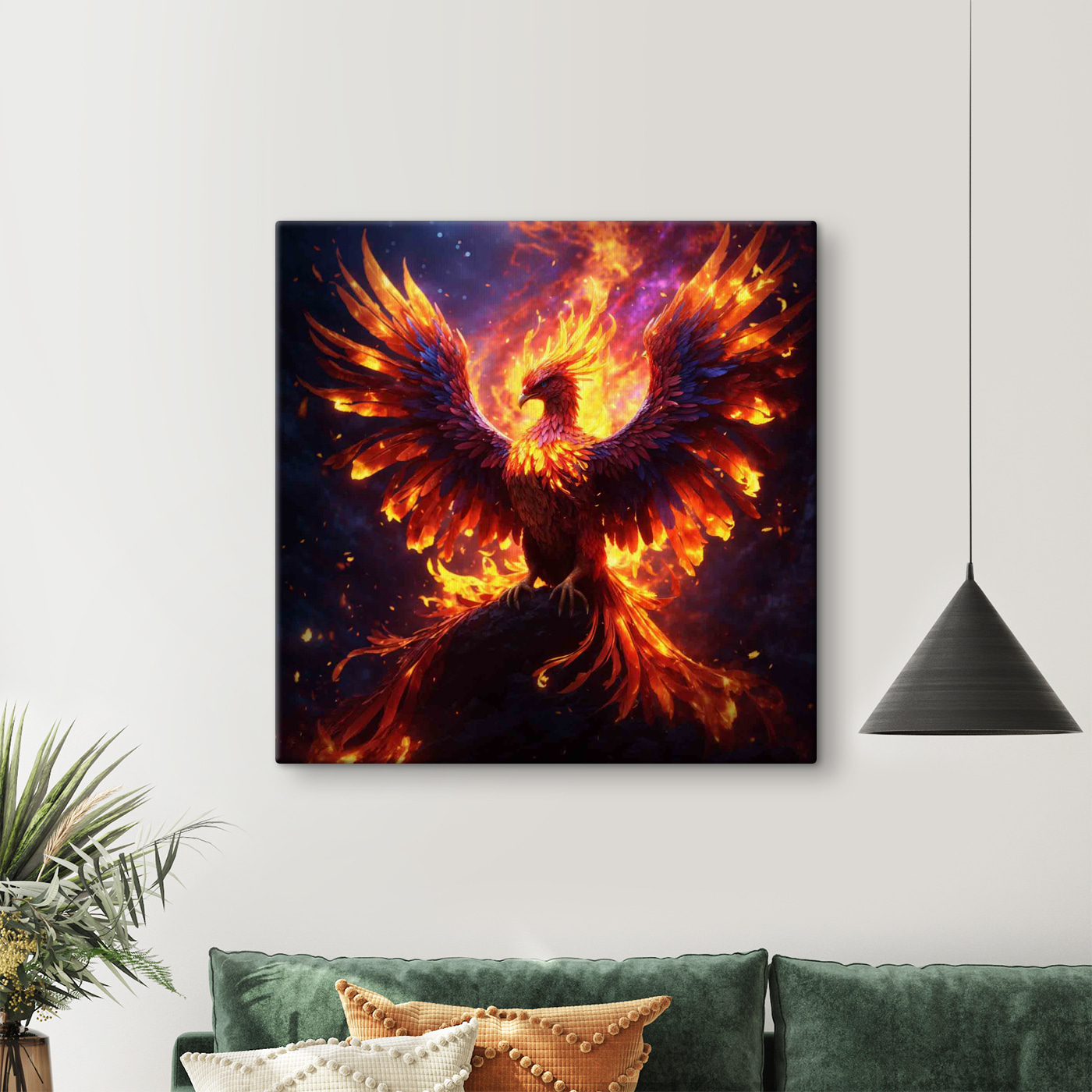 Doriți să adăugați o atmosferă incendiară spațiului dvs.? Acest print pe pânză “Pasăre cu aripi întinse și flăcări în fundal” este absolut uimitor. Imaginați-vă – o pasăre magnifică, cu aripile întinse, cu flăcări vibrante dansând în jur. Este ca și cum ai avea o bucată de mit și magie chiar pe peretele tău.