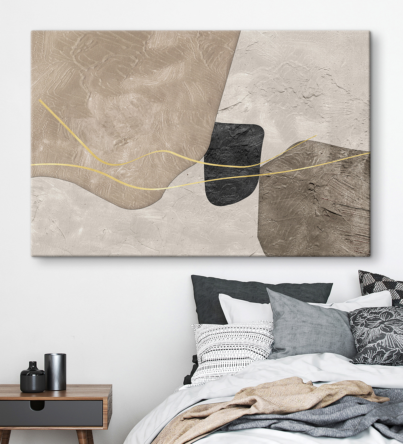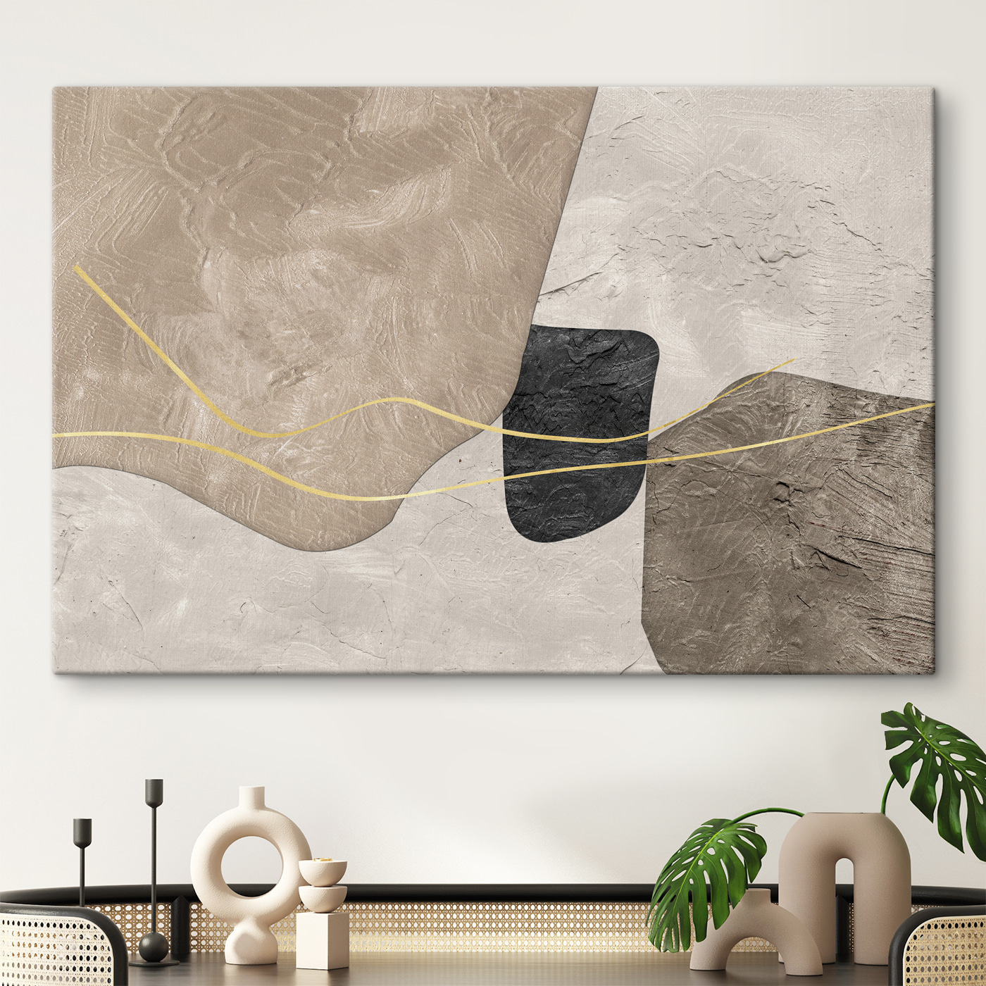 Această pânză aduce în joc textura, astfel încât nu strigă “uită-te la mine”, dar odată ce o faci, nu poți să nu-i apreciezi complexitatea subtilă. Aceasta nu este doar artă; este o experiență. Perfectă pentru spațiile care au nevoie de o notă de sofisticare, fără a pierde acel aer casual, de locuit, pe care îl iubim cu toții.