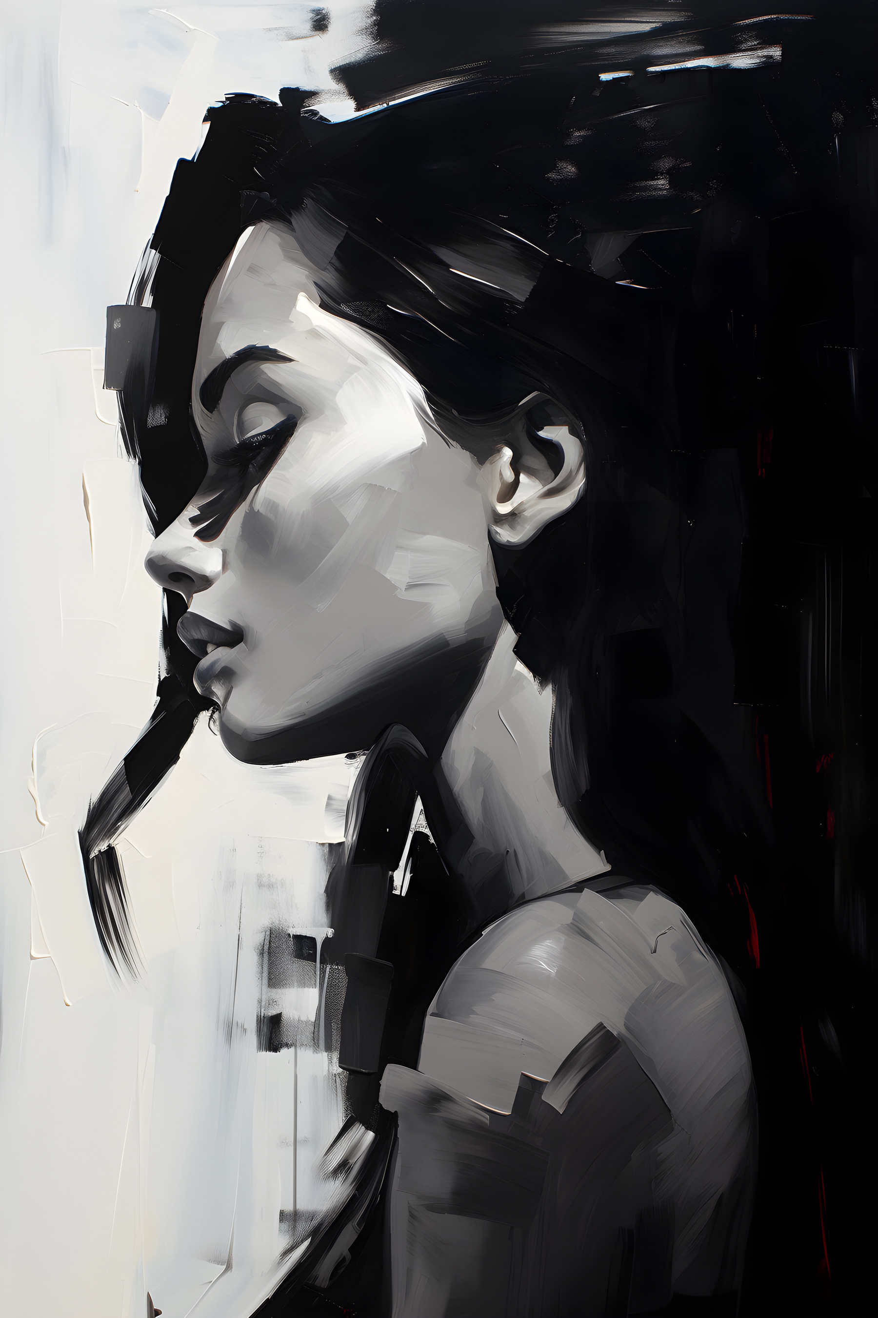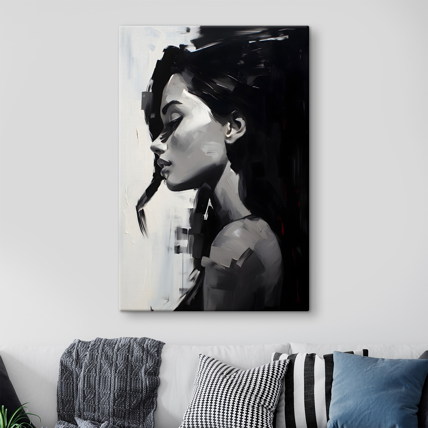 Această frumoasă imprimare pe pânză surprinde esența unei femei într-un mod care pare aproape oniric. Cu tușe de pensulă îndrăznețe și un contrast izbitor, aceasta aduce un sentiment de mister în orice cameră. Imaginați-vă că agățați această piesă într-un colț de lectură confortabil, unde stârnește vise cu ochii deschiși și conversații. Are această vibrație fără efort, ceea ce o face perfectă pentru o zonă de living relaxată. Prietenii ar putea să se oprească și să reflecteze asupra semnificației sale sau poate doar să se bucure de farmecul său estetic. Este ca un companion tăcut – întotdeauna prezent, evocând sentimente și gânduri fără a scoate un cuvânt. Perfect pentru cei care apreciază arta care spune o poveste.
