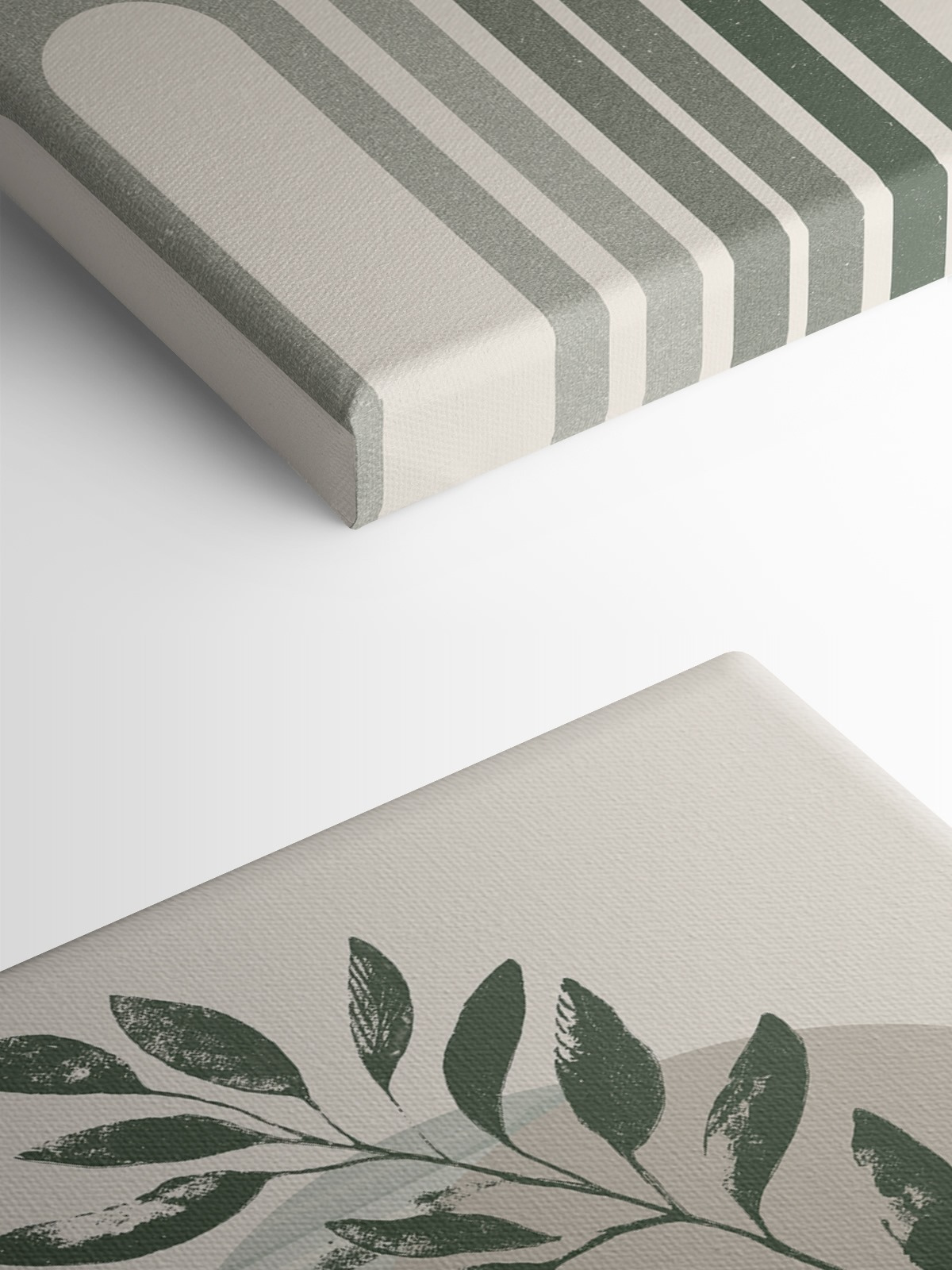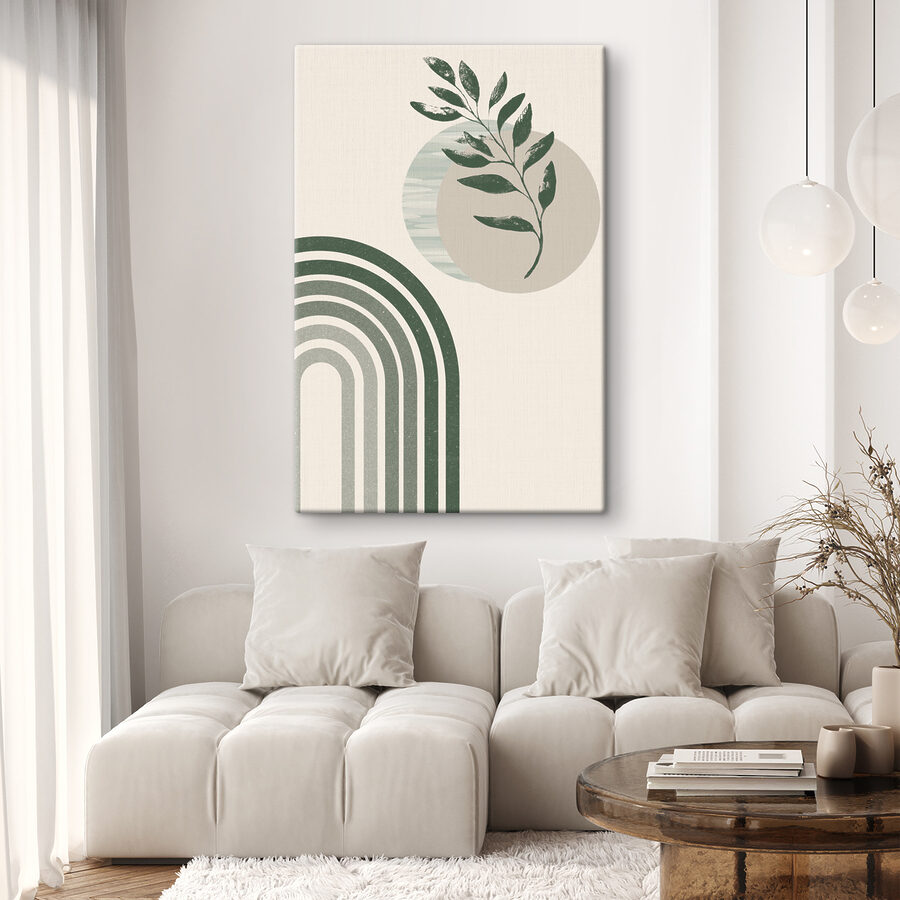 Luminează-ți spațiul cu această imprimare uimitoare pe pânză cu un amestec abstract de frunze și arcuri. Este ca și cum natura și vibrațiile artistice au avut un copil încântător. Imaginați-vă acest tablou agățat într-o cameră de zi confortabilă sau într-un colț liniștit al biroului de acasă; acesta adaugă instantaneu un strop de personalitate. Tonurile pământii se îmbină perfect cu orice decor, în timp ce desenele jucăușe trezesc un sentiment de calm și creativitate. Prietenii te-ar putea întreba unde ai găsit o astfel de bijuterie, iar tu doar vei zâmbi, știind că este atingerea perfectă pentru acele sentimente relaxate, boho. Șoptește, “Bine ați venit în locul vostru fericit”.