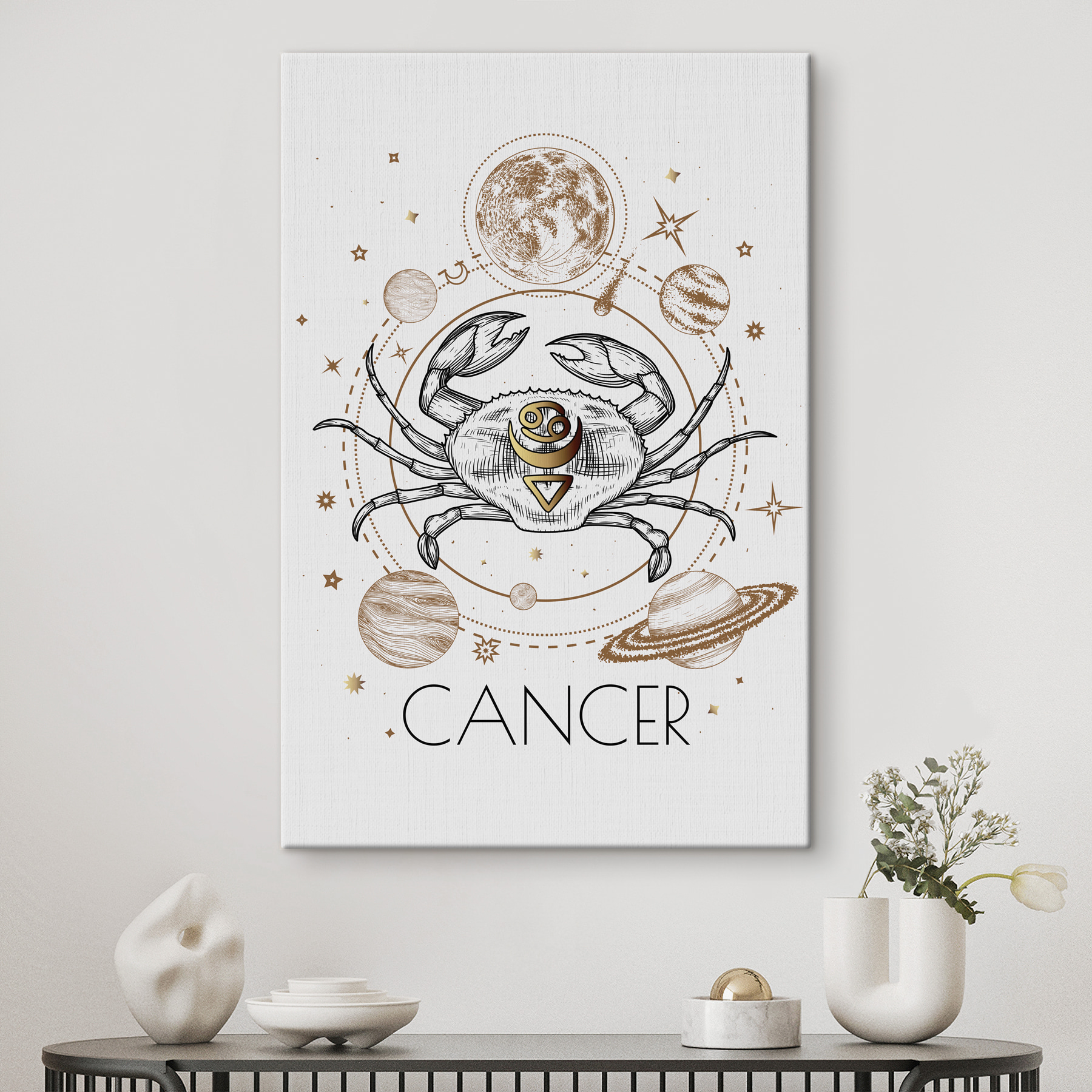 Aduceți cosmosul în spațiul dvs. cu această imprimare încântătoare pe pânză cu semnul zodiacal Rac înconjurat de planete jucăușe și stele sclipitoare. Este ca și cum ai avea o bucățică din univers chiar pe perete, invitând căldura și imaginația în casa ta. Crabul fermecător îți amintește de loialitate și creativitate, ceea ce îl face un starter de conversație perfect pentru prieteni sau o prezență reconfortantă pentru nopțile liniștite în casă. Fie că sunteți Rac sau doar o persoană căreia îi place să privească stelele, această piesă adaugă o notă unică – perfectă pentru vibrațiile boho și minimaliste deopotrivă. Cine nu și-ar dori să se cuibărească sub propria galaxie?