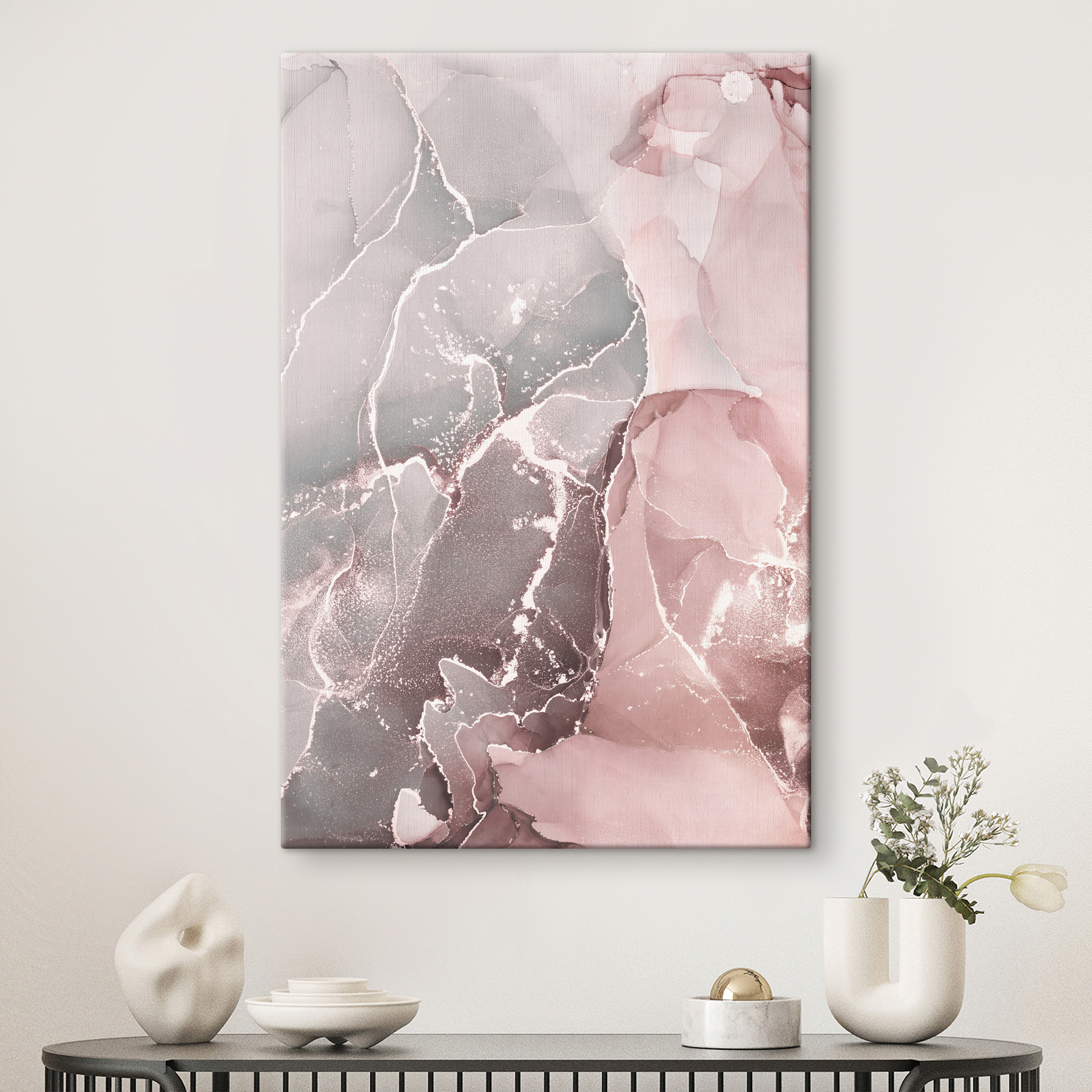 Ați dorit vreodată să aduceți un val de liniște în spațiul dvs. de locuit? Această imprimare pe pânză “Abstract Pastel Marble Pattern” este perfectă. Este ca și cum natura și creativitatea ar fi avut un copil superb în acuarelă! Culorile pastelate în vârtej – roz moale, gri fumuriu și alb blând – curg împreună într-un dans care este deopotrivă calmant și intrigant.