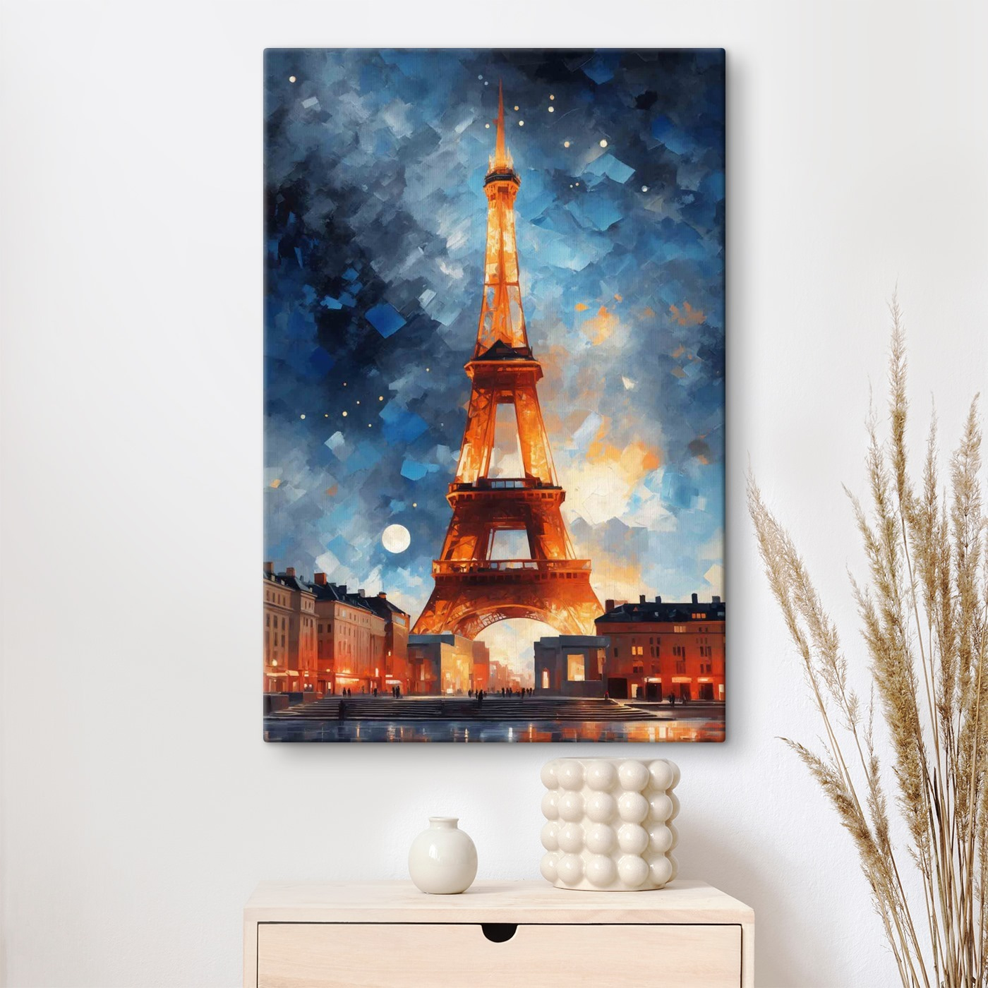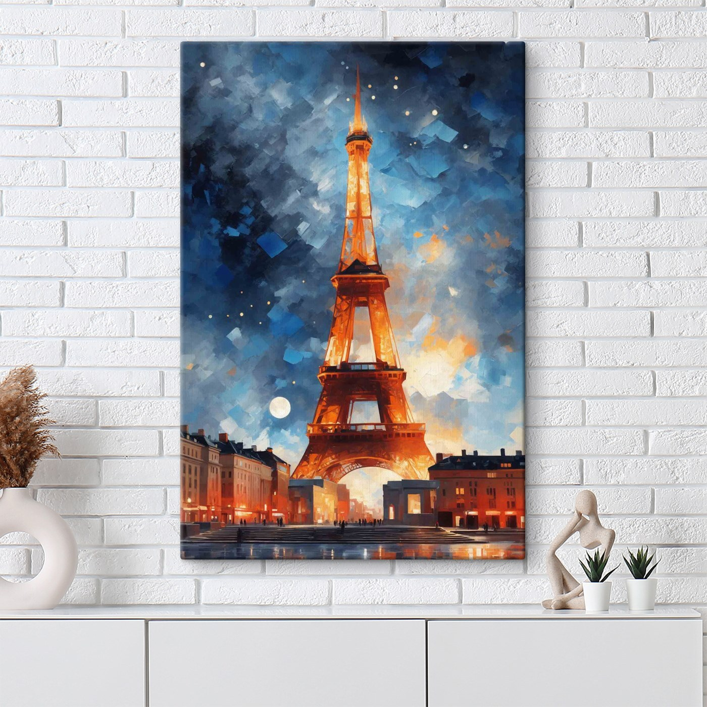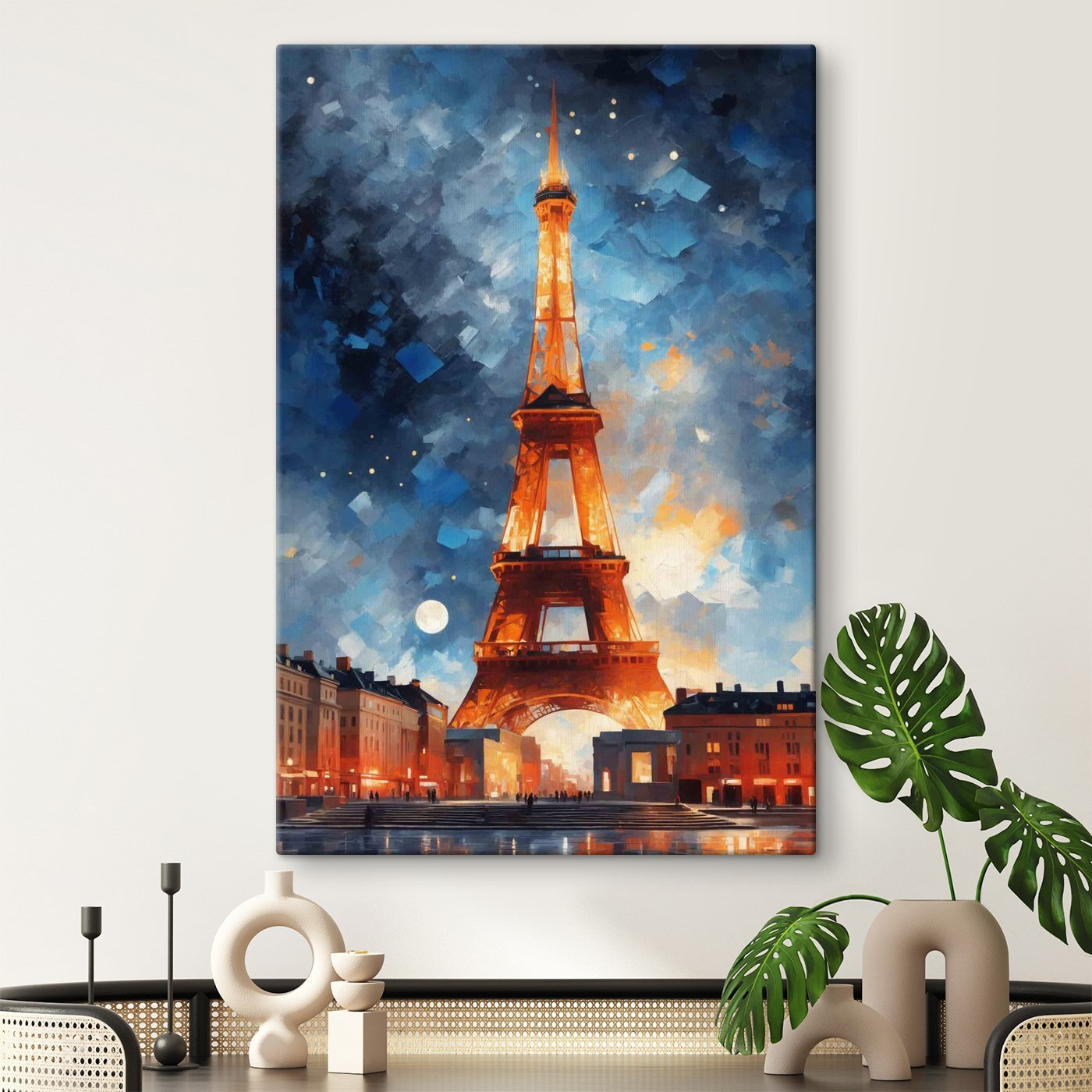 În regulă, imaginează-ți: stai acasă, sorbindu-ți ceaiul de seară, și chiar în fața ta se află această imprimare uimitoare pe pânză a unui turn luminat de cerul nopții. Este ca și cum cineva ar fi capturat un moment în care turnul a decis să își poarte costumul de seară elegant și sclipitor. Albastrul profund și luminile calde aduc o notă de magie în orice spațiu. Gândiți-vă că este ca o fereastră către o altă lume, unde aerul este proaspăt și plin de posibilități. Perfect pentru acel loc din sufrageria dvs. care abia așteaptă un mic factor “wow”. Vă veți pierde în farmecul său de fiecare dată când aruncați o privire în direcția sa, visând probabil la ținuturi îndepărtate.