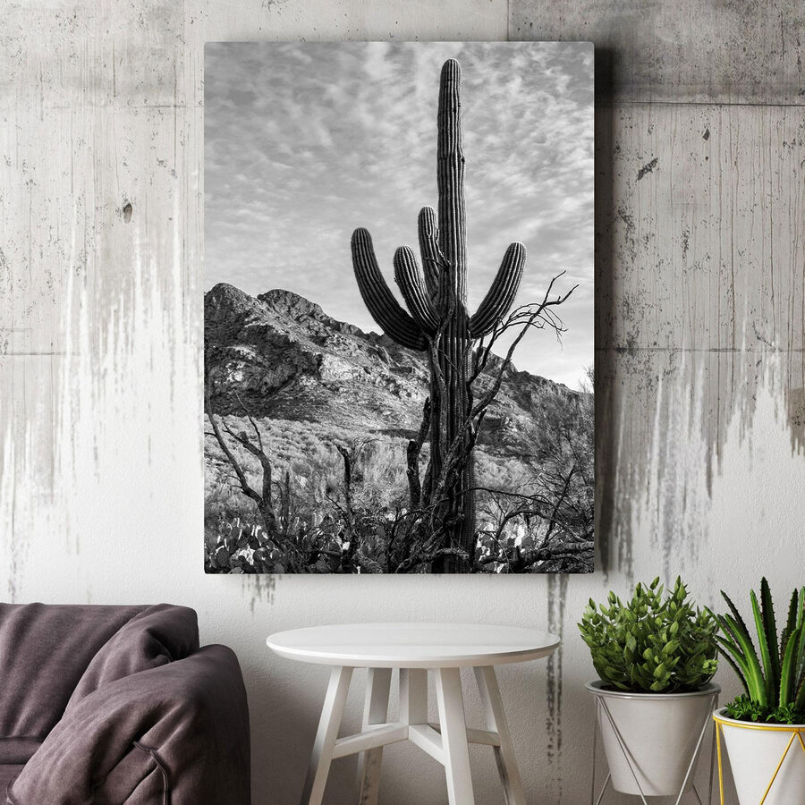 Imaginați-vă că aduceți o felie de deșert chiar în sufrageria dvs. cu această uimitoare imprimare pe pânză “Cactus in the Desert”. Este alb-negru, așa că ar trebui să se potrivească cu aproape orice. Dar acesta nu este un cactus oarecare – are caracter. Aproape că își ridică brațele, spunând: “Uită-te la mine!” Perfect pentru diminețile leneșe de duminică, când vrei doar să sorbi o cafea și să visezi cu ochii deschiși. Această piesă ar putea inspira discuții despre aventură, sau poate doar mai multă cafea. Oricum ar fi, cu siguranță va deveni un subiect de conversație!
