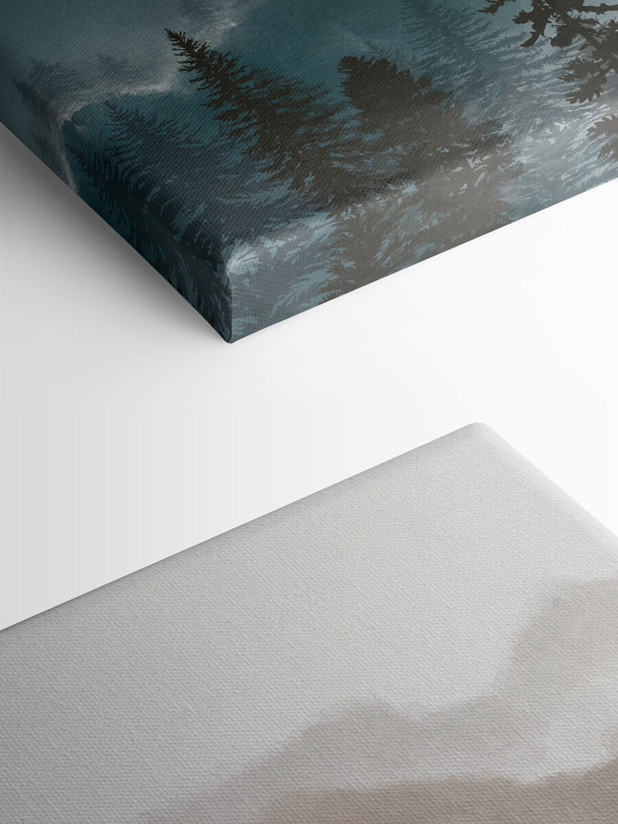 Imaginați-vă acest lucru: stați în sufrageria dvs., cu o ceașcă de ceai, vă așezați în fotoliul dvs. preferat, iar apoi ochii dvs. se îndreaptă spre peretele unde este agățată această pânză uimitoare – instantaneu, sunteți transportat într-o pădure liniștită. Acest print pe pânză “Silueta unui copac” are această vibrație liniștitoare, cu atingerea sa de acuarelă și nuanțele blânde de albastru și verde. Copacii par aproape mistici, ca și cum ți-ar putea șopti secretele pădurii.