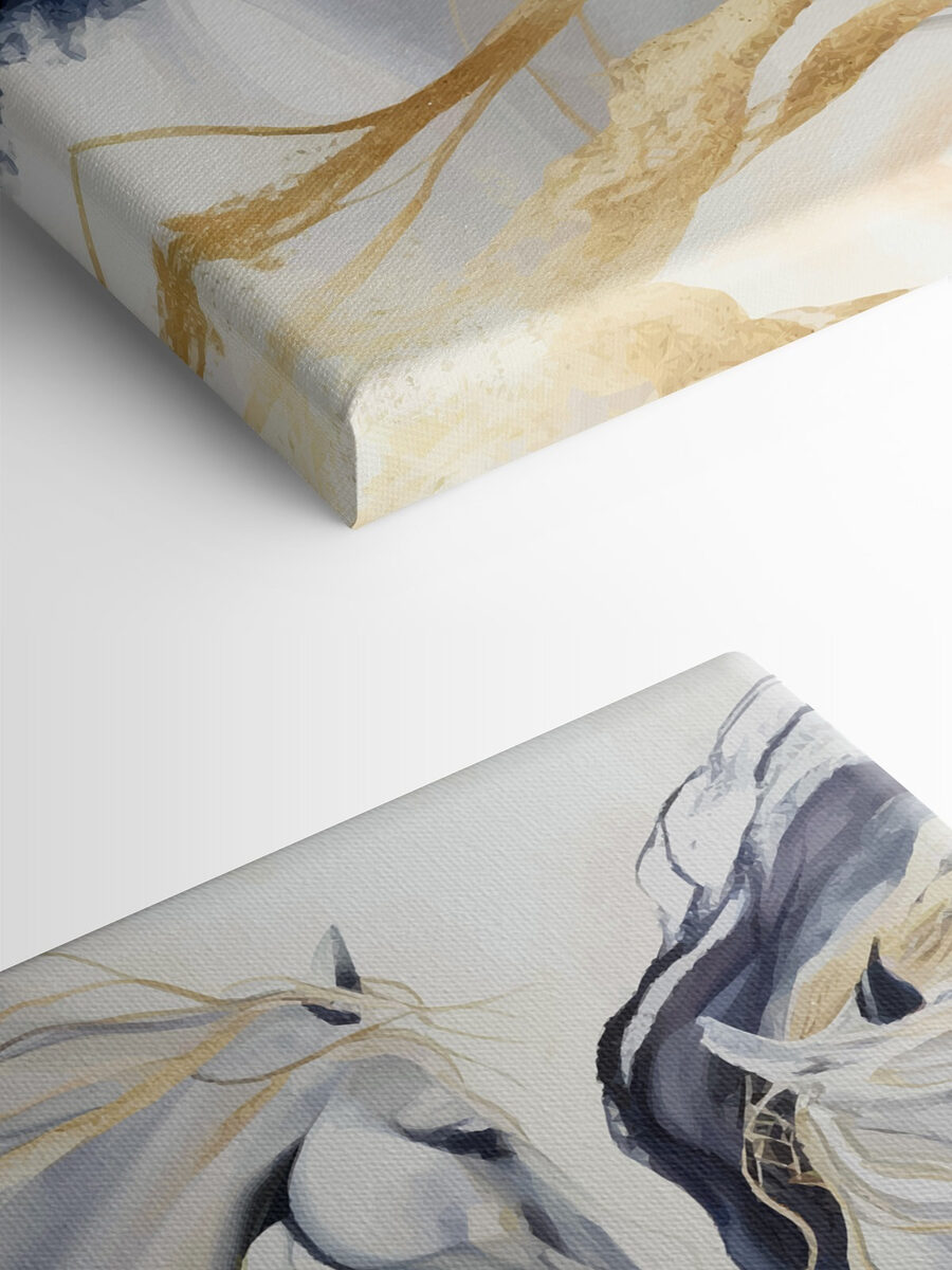 Aduceți o explozie de dramatism și eleganță spațiului dvs. cu imprimarea pe pânză “Majestic Horses in Ethereal Motion”. Imaginați-vă aceste creaturi grațioase galopând liber, cu coamele lor curgătoare învârtindu-se ca valurile moi în briza oceanului. Perfectă pentru iubitorii de animale, această operă de artă poate stârni conversații sau poate servi pur și simplu ca un fundal uluitor atunci când vă relaxați. Agățați-o în sufragerie sau într-un colțișor confortabil și observați cum transformă atmosfera. Este ca și cum ai invita o bucată din sălbăticie în casa ta, dând decorului tău o notă dinamică care va lăsa oaspeții înmărmuriți.
