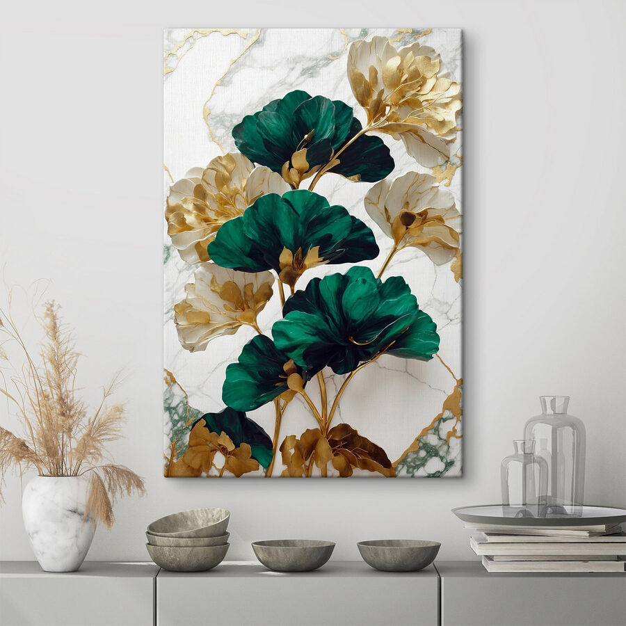 Luminați orice cameră cu izbitoarele “Printuri pe pânză Flori de smarald și fildeș se împletesc elegant”. Aceste flori uimitoare aduc un strop de natură în interior, creând o atmosferă relaxantă, senină. Imaginați-vă că intrați în spațiul dvs. și vă simțiți instantaneu înălțați de verdele vibrant și fildeșul moale. Perfectă pentru o cameră de zi confortabilă sau un birou șic, invită la complimente și stârnește conversații. Va face ca acel perete gol să se simtă ca o piesă statement, șoptindu-vă vorbe dulci despre eleganța florală. Transformați-vă decorul cu aceste flori încântătoare, care ar putea provoca un zâmbet de fiecare dată când treceți pe lângă ele. Cine nu are nevoie de un pic mai multă frumusețe în viața de zi cu zi?