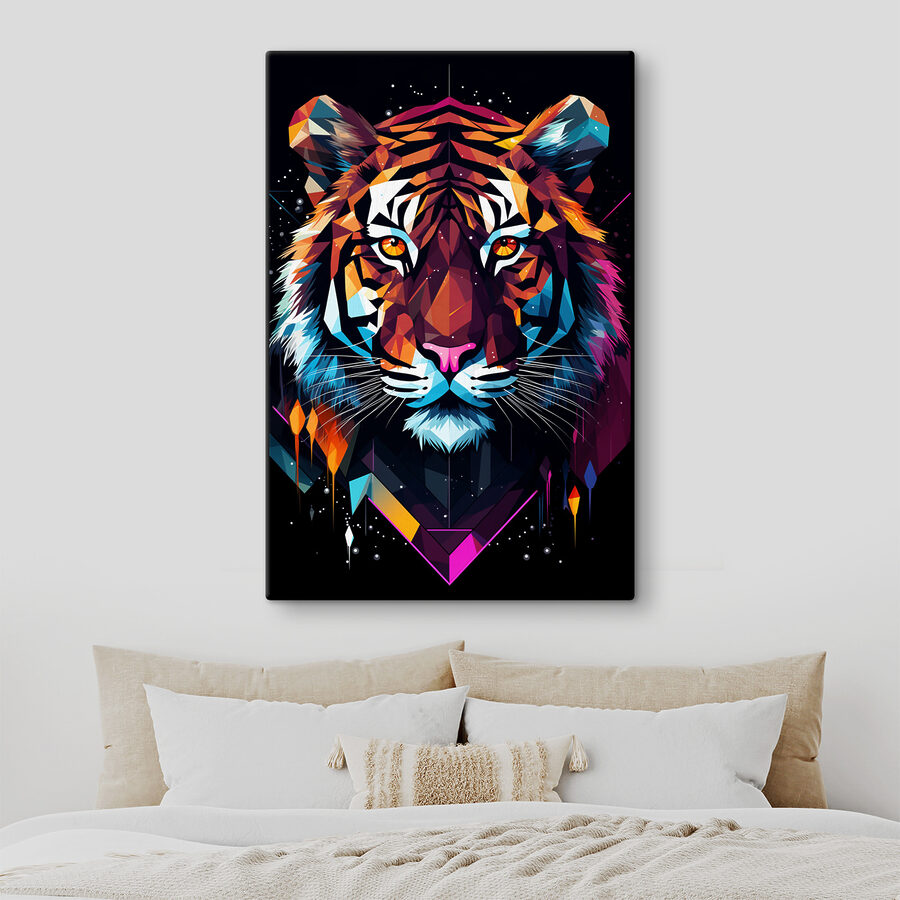 Agață-l în sufragerie, în dormitor sau chiar în birou și lasă nuanțele de portocaliu, albastru și roz să dea viață oricărui perete. Gândiți-vă la el ca la tigrul dvs. personal de pază, cu un strop de lumini neon. Fiecare privire la el va aduce o mică explozie de bucurie și un ușor fior pe șira spinării… într-un sens bun, desigur. Este mai mult decât o simplă operă de artă – este un starter de conversație, o stare de spirit instantanee și piesa perfectă pentru oricine are o inimă puțin sălbatică. Așa că haideți, adăugați o notă de frumusețe neîmblânzită în casa voastră!