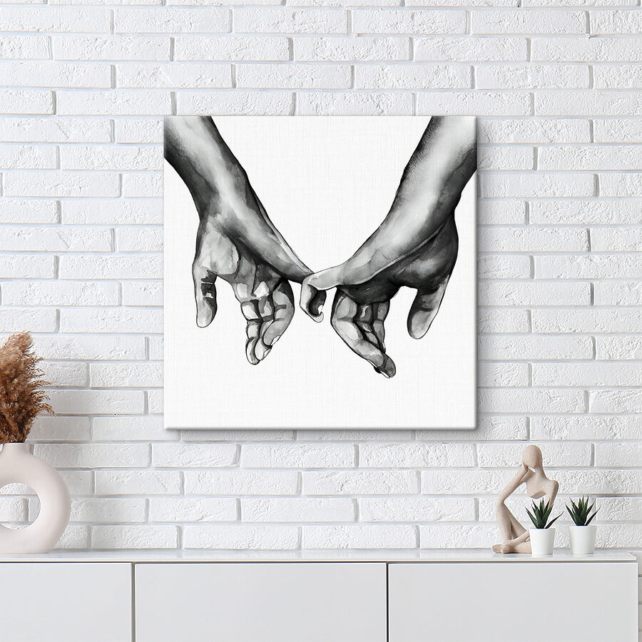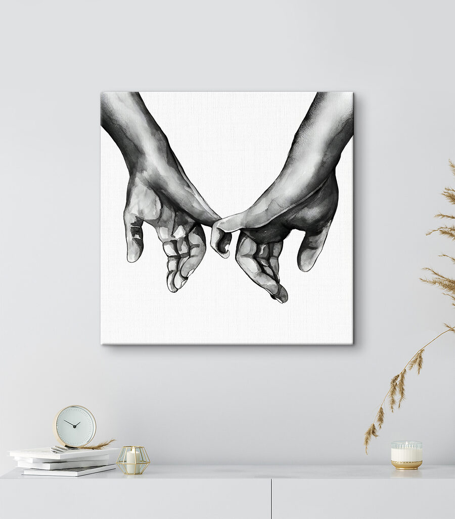 Această imprimare uimitoare pe pânză surprinde frumusețea simplă a două mâini care se țin una de cealaltă, o imagine care vorbește mai tare decât cuvintele. Imaginați-vă că vă împodobește peretele, un memento blând al legăturii și căldurii. Designul alb-negru adaugă o notă de rafinament, făcându-l perfect pentru orice cameră. Imaginați-vă prieteni care trec pe aici, se opresc să admire această piesă și stârnesc conversații despre dragoste, prietenie sau chiar un moment din viața lor. Nu este doar artă; este o amintire a faptului că toți avem nevoie de acea atingere, de acea legătură. Perfectă pentru cei care apreciază decorul unic cu o notă sinceră!
