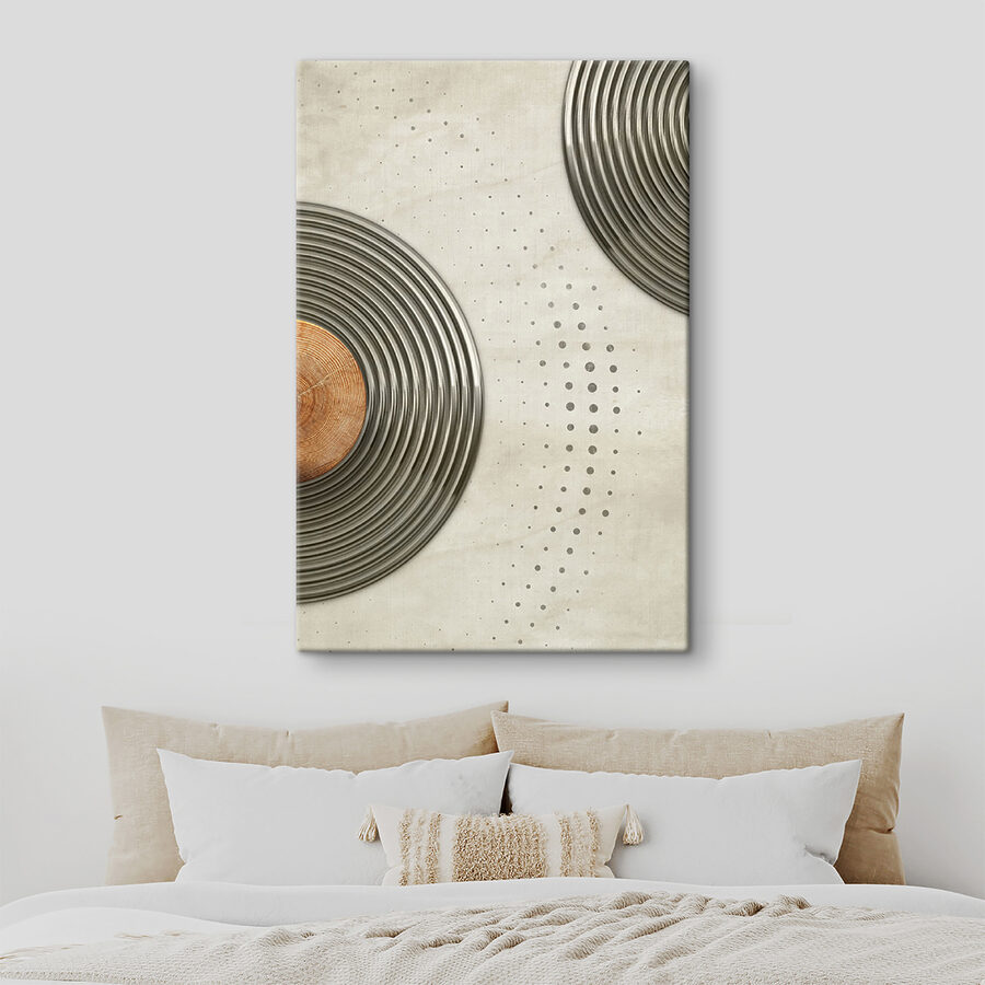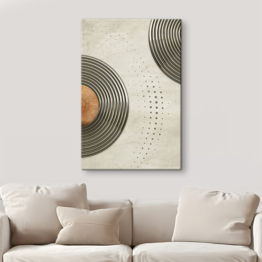 Transformați orice perete într-un subiect de conversație cu această imprimare pe pânză cu un design circular dinamic. Este ca o petrecere de dans pentru peretele dvs. – vârtejuri fără sfârșit și modele jucăușe care atrag atenția! Imaginați-vă-o într-un loft confortabil sau într-o cafenea la modă; cu siguranță va stârni bucurie și inspirație. Tonurile subtile sunt ușoare pentru ochi, ceea ce îl face fundalul perfect pentru ritualul cafelei de dimineață sau pentru o întâlnire distractivă cu prietenii. Cui nu i-ar plăcea o piesă care pare modernă și primitoare în același timp? Este arta care șoptește, “stai puțin”.