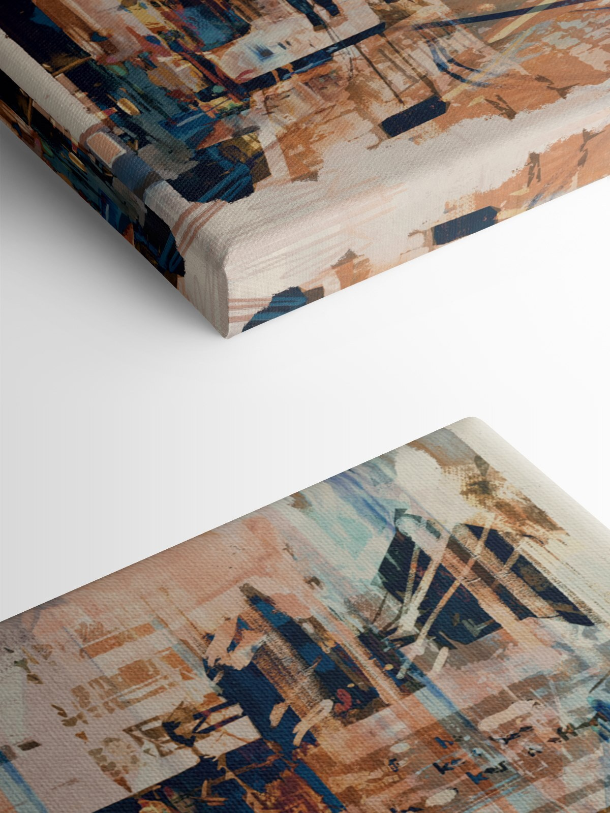 Transformați-vă spațiul cu acest print pe pânză, cu un peisaj urban abstract care emană căldură și farmec. Imaginați-vă acest lucru: nuanțe blânde și primitoare se rotesc împreună, capturând agitația vieții urbane fără zgomot. Este ca și cum ai păși într-o cafenea confortabilă de pe o stradă plină de viață, unde poveștile sunt șoptite la o cafea aburindă. Loviturile jucăușe de pensulă vă invită privirea, făcând din fiecare privire o mică aventură. Agățați-o în sufragerie și s-ar putea să inspire conversații – sau visări cu ochii deschiși despre călătoria pe care ați plănuit-o. Perfect pentru oricine dorește o notă de creativitate în decorul său!