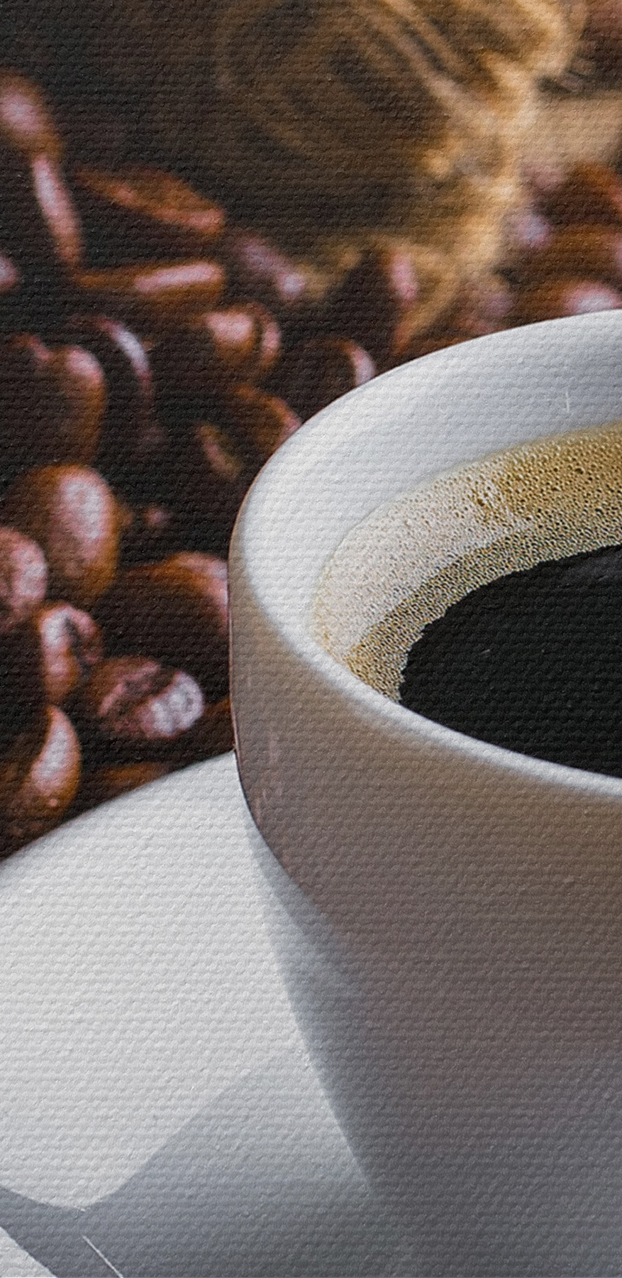 Aruncați o privire la această imprimare fermecătoare pe pânză a unei cești aburinde de cafea, asociată cu un sac de iută plin cu boabe de cafea. Este ca și cum ai capta acel moment confortabil și aromat al fericirii de dimineață chiar pe peretele tău. Imaginați-vă că intrați în bucătăria sau în salonul dvs. și simțiți acel sentiment de căldură – ca și cum ați simți aroma bogată a cafelei. Perfect pentru orice iubitor de cafea sau pentru oricine iubește o atmosferă confortabilă. Este ca un discurs de încurajare de dimineață de pe perete! În plus, adaugă o notă rustică minunată spațiului tău. Cu siguranță un plus încântător pentru a înveseli orice colț de cafea sau zonă de luat masa.