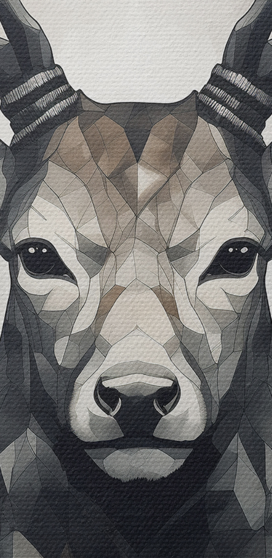 Culorile – griuri atenuate, maro și alb – sunt foarte versatile, astfel încât se vor potrivi perfect cu aproape orice decor. În plus, privirea calmă și stabilă a cerbului are ceva aproape meditativ. Aceasta nu este doar o operă de artă, este ca o prezență senină pe perete.