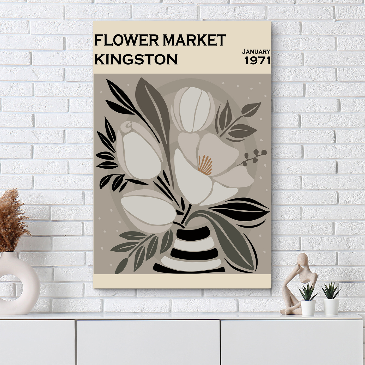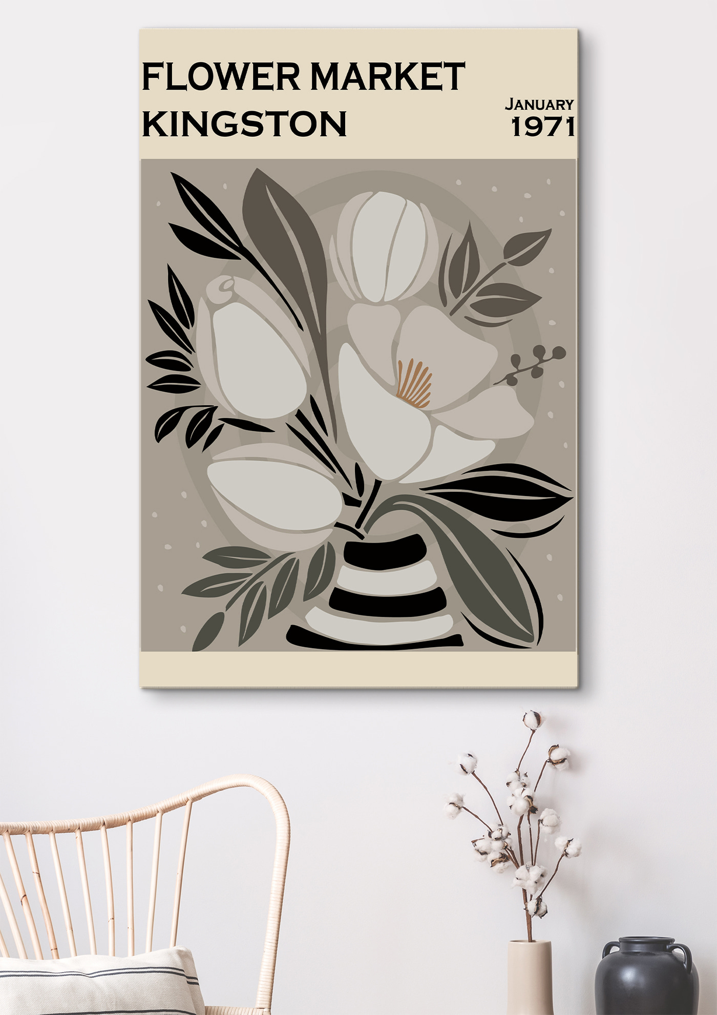 Aduceți o notă de farmec vintage pereților dvs. cu acest “Tablouri Vintage floral art, Kingston 1971.” Imaginați-vă că pășiți într-o cafenea confortabilă de pe o stradă însorită, unde florile dansează în briză și poveștile persistă în aer. Această piesă surprinde frumos acest spirit. Tonurile atenuate și designul jucăuș o fac ușor de integrat în orice spațiu, fie că este vorba de un colț boho sau de un living modern. Este ca o mică fereastră către alt timp – perfectă pentru a stârni conversații sau pur și simplu pentru a visa cu ochii deschiși în timp ce vă sorbiți cafeaua. Cine nu și-ar dori asta? Îmbrățișați căldura pe care o aduce această operă de artă.