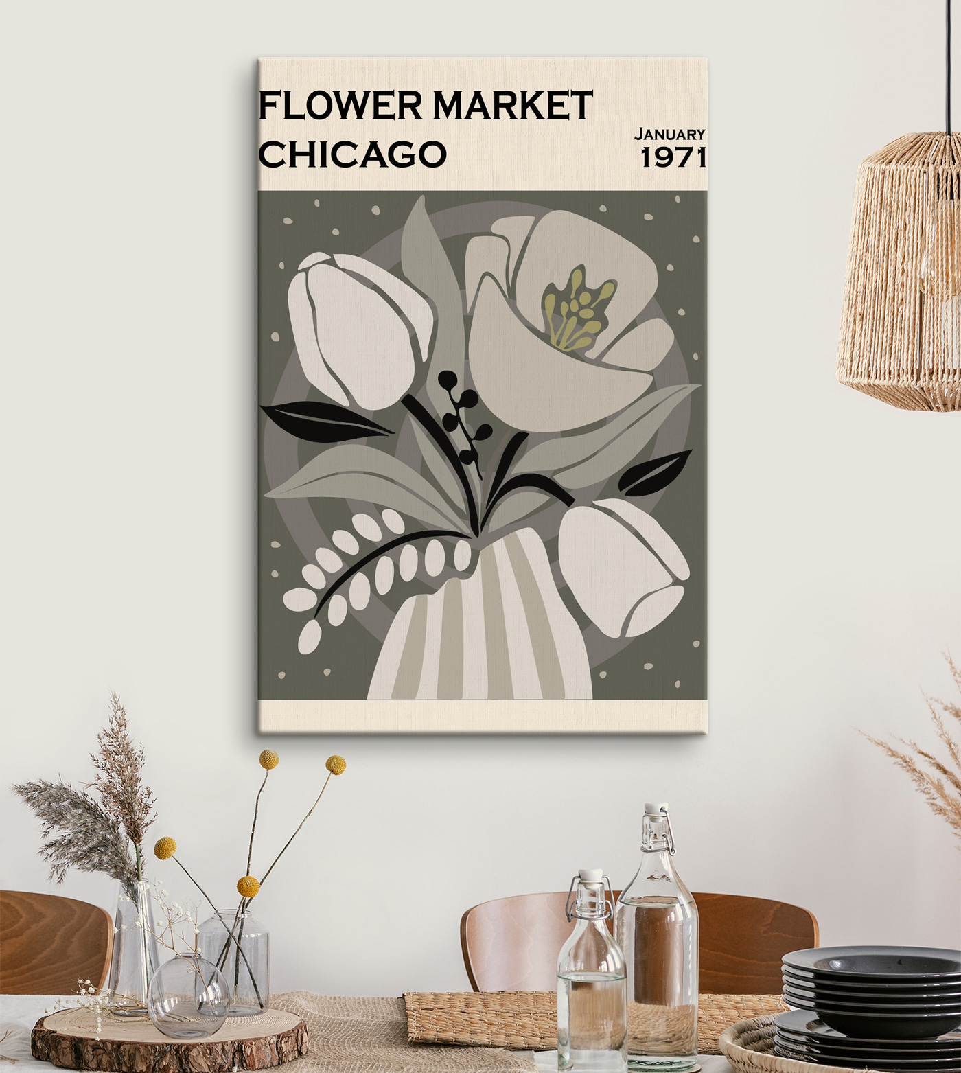 Priviți această încântătoare imprimare pe pânză intitulată “Tablouri Retro floral illustration in muted tones.” Aceasta se află în categoriile Boho Canvas Art, Flowers Canvas Art și Popular Canvas Art – o amenințare triplă! Imaginați-vă acest lucru: este o duminică dimineața leneșă, soarele intră înăuntru, iar dvs. vă sorbiți cafeaua preferată. Această piesă în stil vintage, cu culorile sale blânde și discrete, iese în evidență de pe perete și îți atrage privirea. Are acest farmec de modă veche, de parcă ai păși într-o piață de flori atemporală din Chicago, în 1971. Este excentrică, este liniștitoare – adaugă o notă blândă și melancolică spațiului. Oaspeții dvs. s-ar putea să facă o dublă privire, crezând că au dat peste o revistă retro! Tonurile neutre se îmbină perfect cu aproape orice decor, făcând-o versatilă, dar de neuitat. Perfectă pentru a aduce acea atmosferă confortabilă și nostalgică, fără a strigă după atenție. Iubiți locul în care trăiți – și lăsați această frumusețe să vă ajute să vă spuneți povestea!