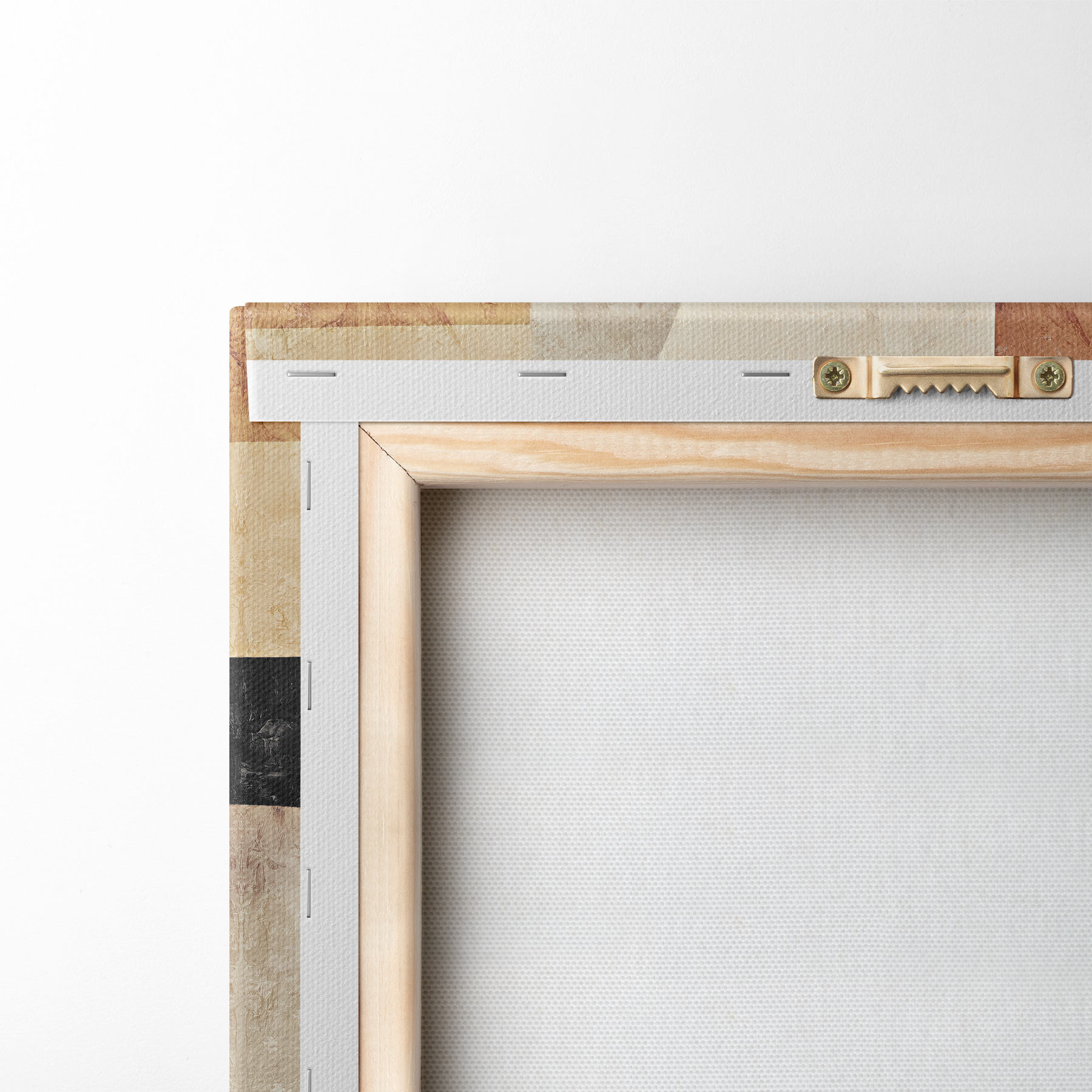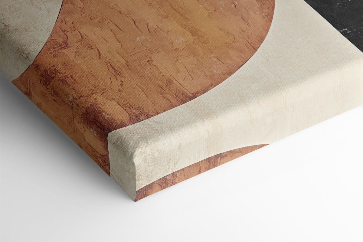 Transformarea unui perete plictisitor într-un punct focal uimitor este ușoară cu această artă pe pânză minimalistă. Imaginați-vă-o agățată deasupra unei canapele confortabile, reunind fără efort spațiul dvs. Paleta liniștitoare de tonuri calde și forme geometrice invită la căldură, făcând orice cameră să pară mai primitoare. Este ca o îmbrățișare reconfortantă pentru pereții dvs. Privind-o, cineva ar putea chiar să-și găsească inspirația în timp ce soarbe o cafea sau răsfoiește o carte. În plus, este suficient de versatil pentru a se potrivi oricărei vibrații, fie că este modernă, boho sau puțin eclectică. Perfect pentru a adăuga caracter fără a striga “Uită-te la mine!” – pentru că uneori, subtilitatea are farmecul ei.