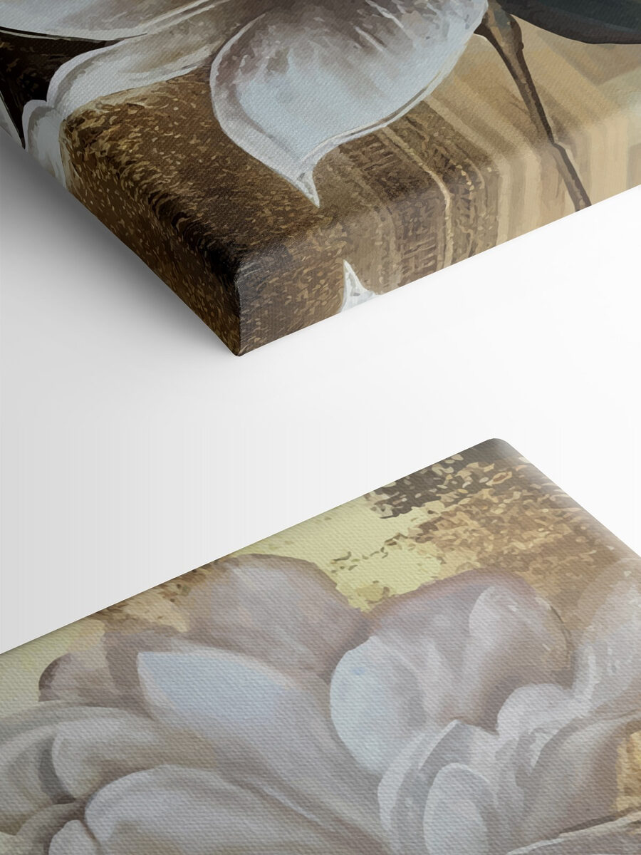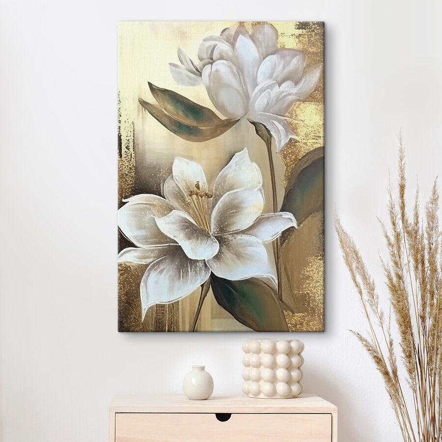 Înveseliți orice cameră cu această imprimare uimitoare pe pânză, care prezintă flori albe delicate asociate cu frunze verzi minunate. Imaginați-vă aceste flori vibrante care vă împodobesc peretele, aducând un strop de natură în interior. Perfectă pentru spațiile confortabile sau pentru acele colțuri senine care au nevoie de puțină dragoste, această operă de artă șoptește eleganță fără a strigă după atenție. Imaginați-vă-o într-un loc însorit, aruncând umbre blânde și îndulcind atmosfera. Este ca și cum ai avea o felie de primăvară pe tot parcursul anului. O atingere perfectă pentru oricine dorește să creeze o atmosferă calmă și primitoare!