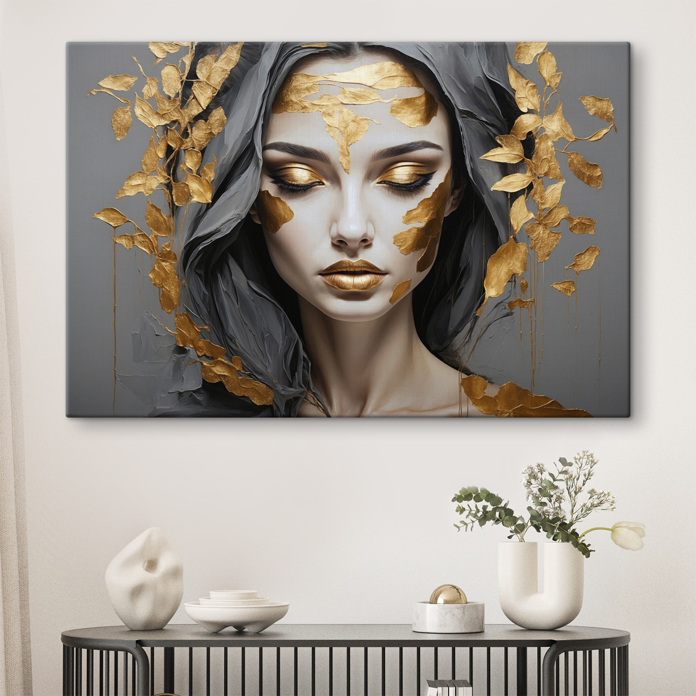 Imaginați-vă că pășiți într-o oază liniștită de fiecare dată când priviți această piesă. Cu un chip senin încadrat de frunze elegante, este ca și cum natura și frumusețea au avut o mică discuție și au decis să facă artă. Contrastele subtile aduc o căldură în orice spațiu, invitând la acele vibrații confortabile. Imaginați-vă-o deasupra unei canapele, unde prietenii se adună pentru a împărtăși povești, sau într-un colț liniștit unde cineva poate evada cu o carte bună. Există ceva aproape magic în felul în care ar putea face o cameră să se simtă – calmă, dar plină de viață. Perfect pentru cei care iubesc o notă de artă fără a exagera!