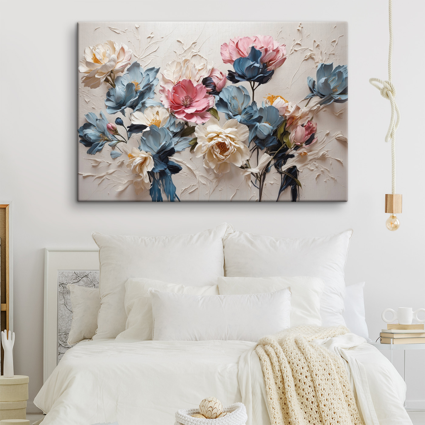 Adăugați o gură de aer proaspăt în orice cameră cu această imprimare pe pânză vibrantă cu flori pastelate care sar practic de pe perete. Imaginați-vă că intrați și sunteți întâmpinați de rozuri moi și albastru rece, ca o îmbrățișare blândă dintr-o dimineață de primăvară. Nu este doar artă de perete; este un stimulent al dispoziției care șoptește: “Nu uita să te oprești și să miroși trandafirii” – sau, în acest caz, bujorii și lalelele! Perfectă pentru un colț confortabil sau un spațiu de locuit plin de viață, această piesă aduce un strop de culoare și bucurie, făcând fiecare privire să se simtă ca o mini evadare într-o grădină frumoasă. Cui nu i-ar plăcea asta?