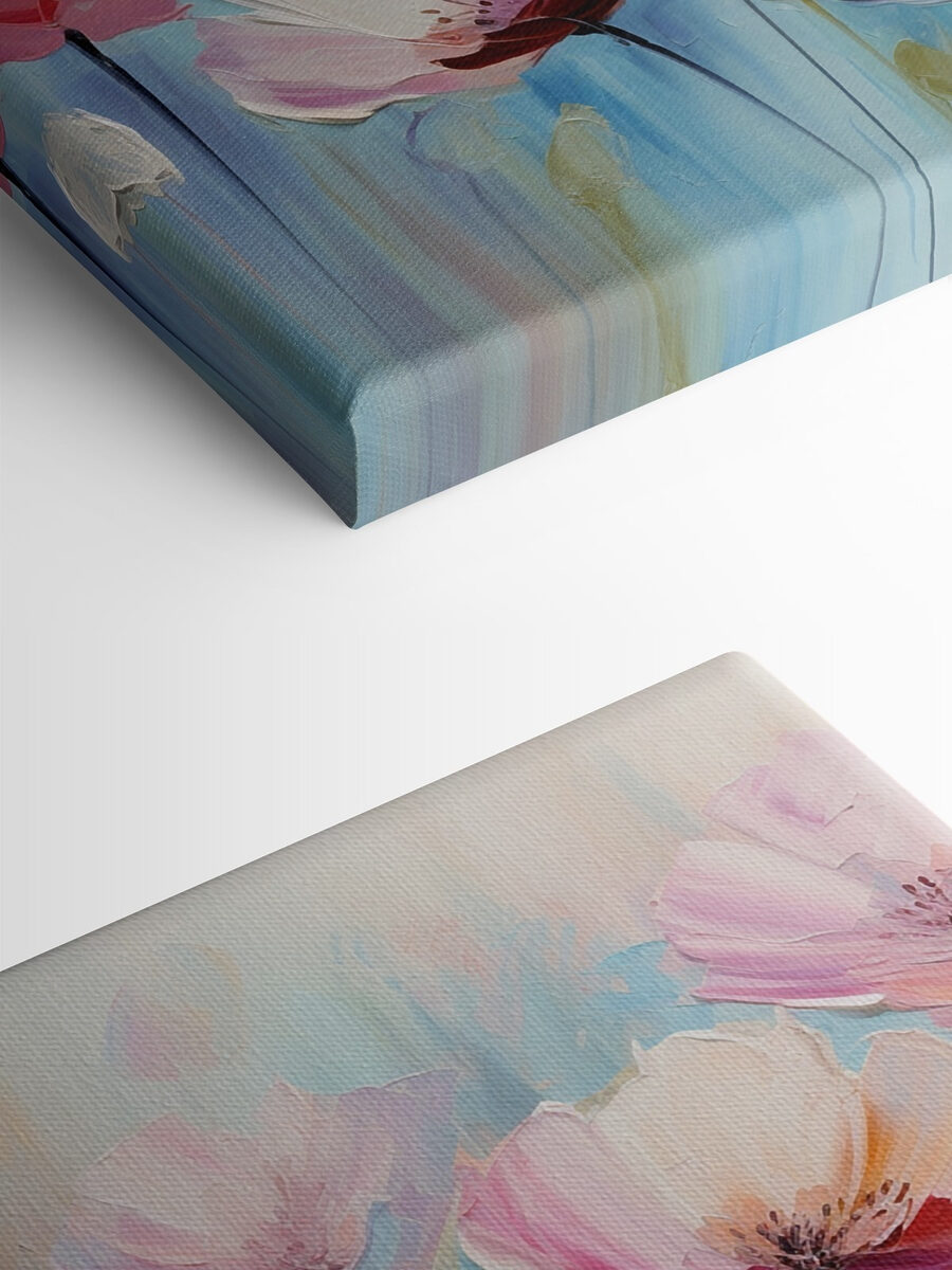Imaginați-vă că aveți un strop de primăvară chiar pe perete cu acest print pe pânză numit “Vibrant Blooms Against a Blue Sky”. Este ca și cum te-ai plimba printr-un câmp de flori de vis în acuarelă, unde fiecare petală pare să danseze cu briza. Culorile sunt atât de vii, încât aproape cântă. Perfect pentru iubitorii de flori sau pentru oricine dorește o bucată de natură în interior!