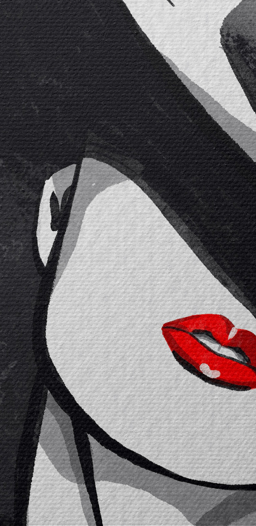 În regulă, imaginați-vă că adăugați o notă de eleganță modernă spațiului dvs. cu această imprimare pe pânză “Femeie purtând pălărie”. Este o piesă destul de ingenioasă – îndrăzneață, puțin misterioasă și foarte elegantă. Aceste buze roșii izbitoare așezate pe fundalul acuarelei alb-negru îi conferă un aer aproape cinematografic. Perfect pentru momentele în care vrei să te simți ca într-un film noir elegant. Pune-l în sufragerie sau în dormitor pentru a stârni instantaneu conversații. Crede-mă, nu este doar o pânză, este o întreagă stare de spirit!