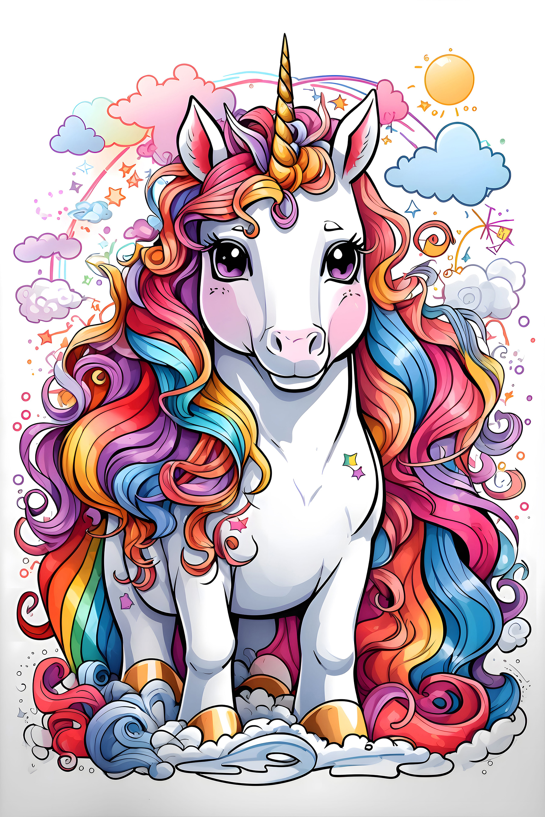 Bună ziua! Aruncă o privire la acest print canvas minunat: “Desen animat al unui unicorn cu păr curcubeu”. Este perfect pentru camera copilului tău sau pentru oricine este tânăr la suflet. Imaginează-ți acest unicorn vibrant cu părul său de vis care adaugă un strop de magie pe perete. Aceste culori sunt sălbatice, nu-i așa? Practic, ele dansează pe pânză.