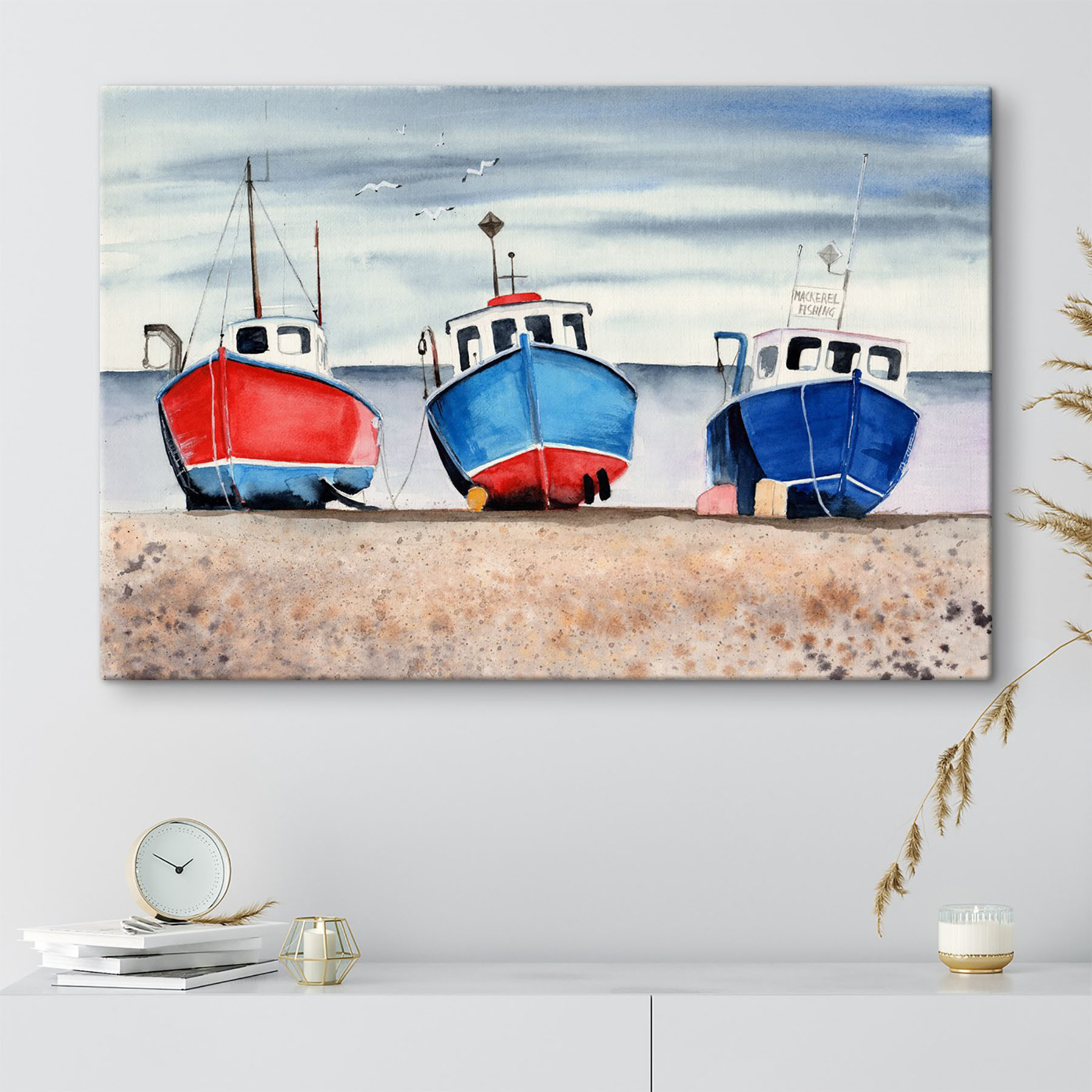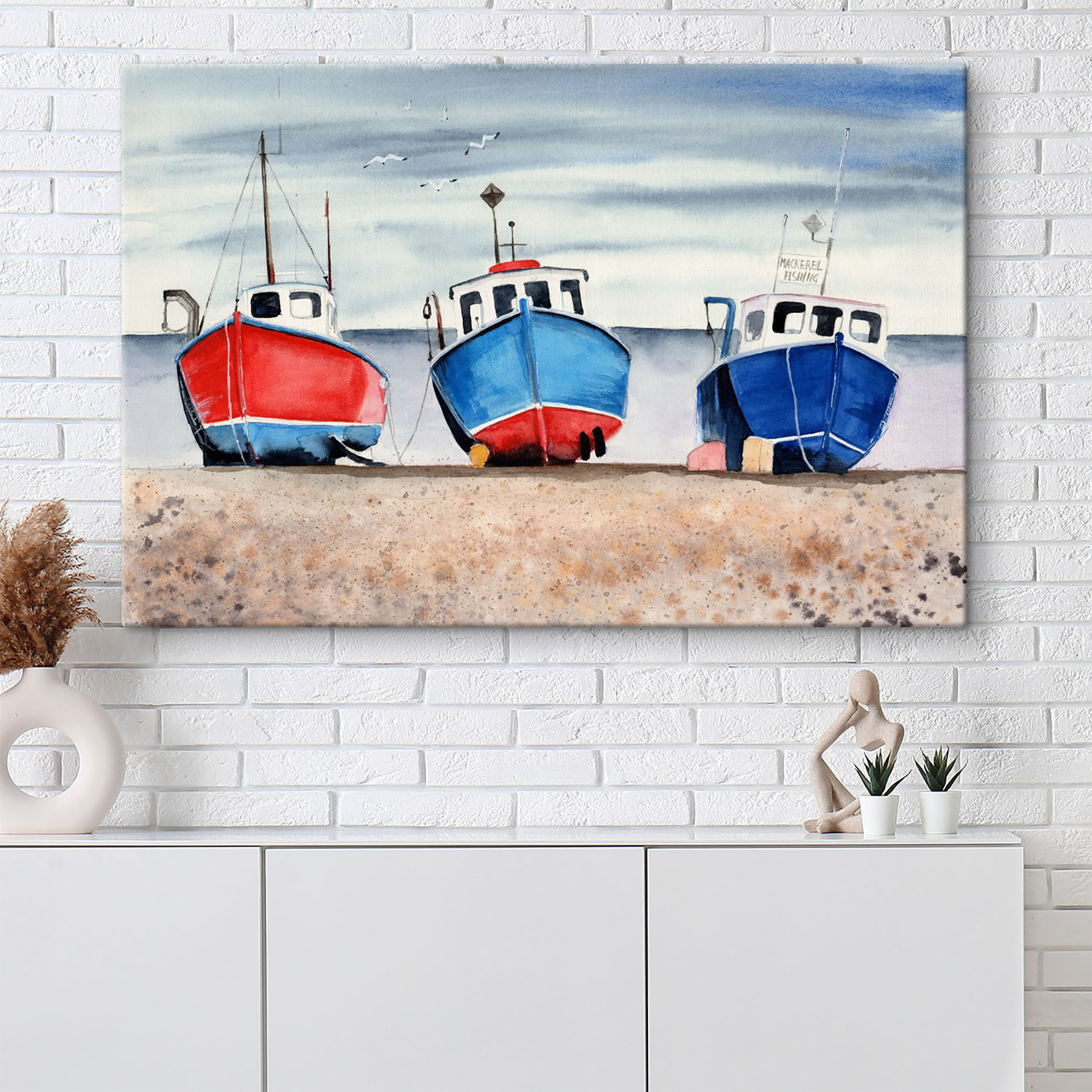 Imaginați-vă că vă plimbați de-a lungul unei plaje în briză, cu aerul sărat îmbrățișându-vă ca o pătură confortabilă. Această “Acuarelă cu bărci pe o plajă” nu este doar artă – este o mică evadare din agitație. Aceste ambarcațiuni roșii și albastre vibrante, așezate confortabil pe țărm, par să șoptească povești despre călătorii de pescuit aventuroase și zile de vară leneșe. De fiecare dată când vă atrage atenția, este ca o amintire blândă a escapadelor însorite și a simplității vieții. Agățați-o și, dintr-o dată, peretele acela simplu pare că trăiește, aducând vibrațiile plajei direct în camera dvs. Încântător, nu-i așa? Perfect pentru a stârni conversații sau doar pentru a visa cu ochii deschiși!