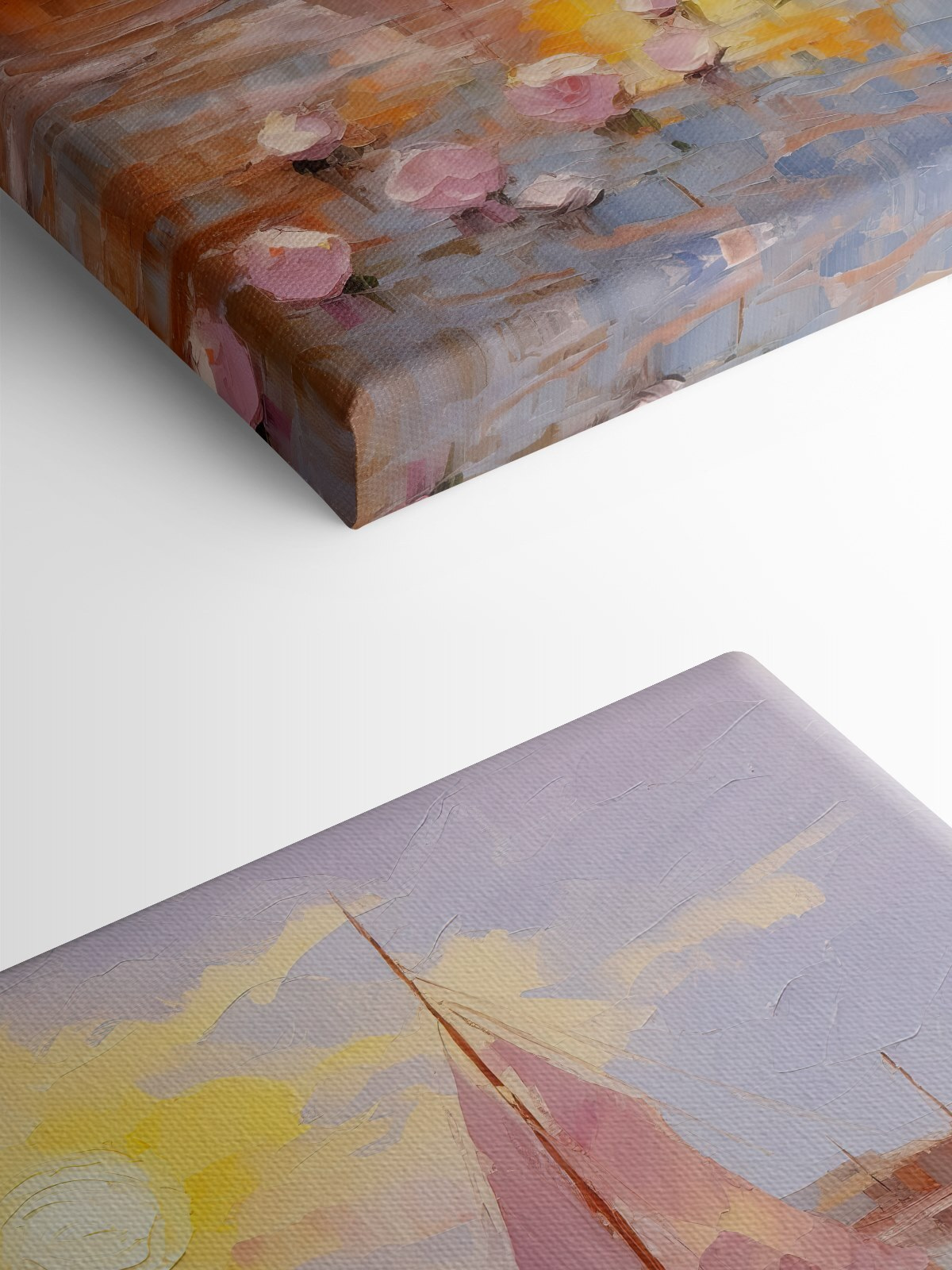 Imaginați-vă că intrați într-o cameră și sunteți întâmpinați de o pânză uimitoare cu bărci cu pânze care se scaldă într-un apus de soare cald. Această piesă are un mod de a face viața de zi cu zi să pară un pic mai specială. Nuanțele pastelate dansează împreună, aruncând un sentiment de calm asupra oricărui spațiu. Imaginați-vă sorbind cafea, visând cu ochii deschiși și lăsând valurile blânde de culoare să vă învăluie gândurile.