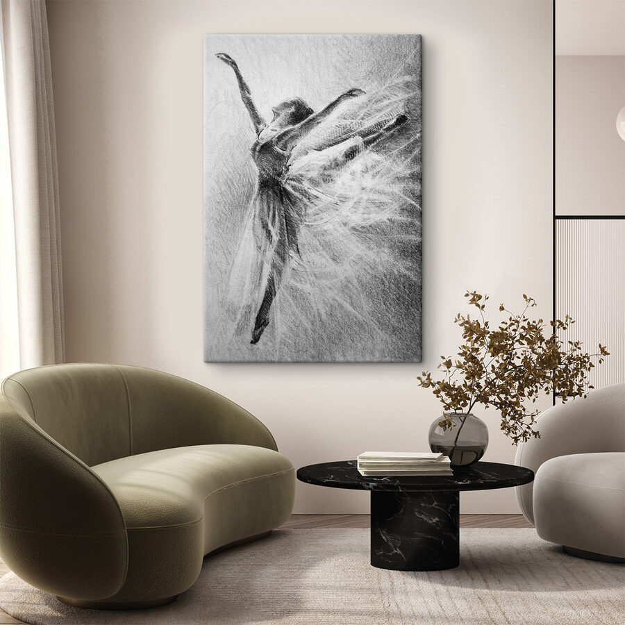 Imaginează-ți că te relaxezi în sufrageria ta, ridicând privirea pentru a vedea această imprimare uimitoare pe pânză – un desen delicat al unei femei care dansează. Este plin de grație și mișcare, aproape ca și cum ar putea sări de pe perete și să se rotească în jurul camerei. Această piesă nu este doar artă; este o experiență. Trăsăturile schițate și texturile aerisite par să șoptească povești de eleganță și libertate. Perfectă pentru a adăuga o notă de seninătate în orice spațiu, această gravură ar putea inspira un mic pas de dans sau doi în propria zonă de zi! Ce început de conversație, nu-i așa? Ideală pentru cei care prețuiesc frumusețea formei umane și bucuria dansului.
