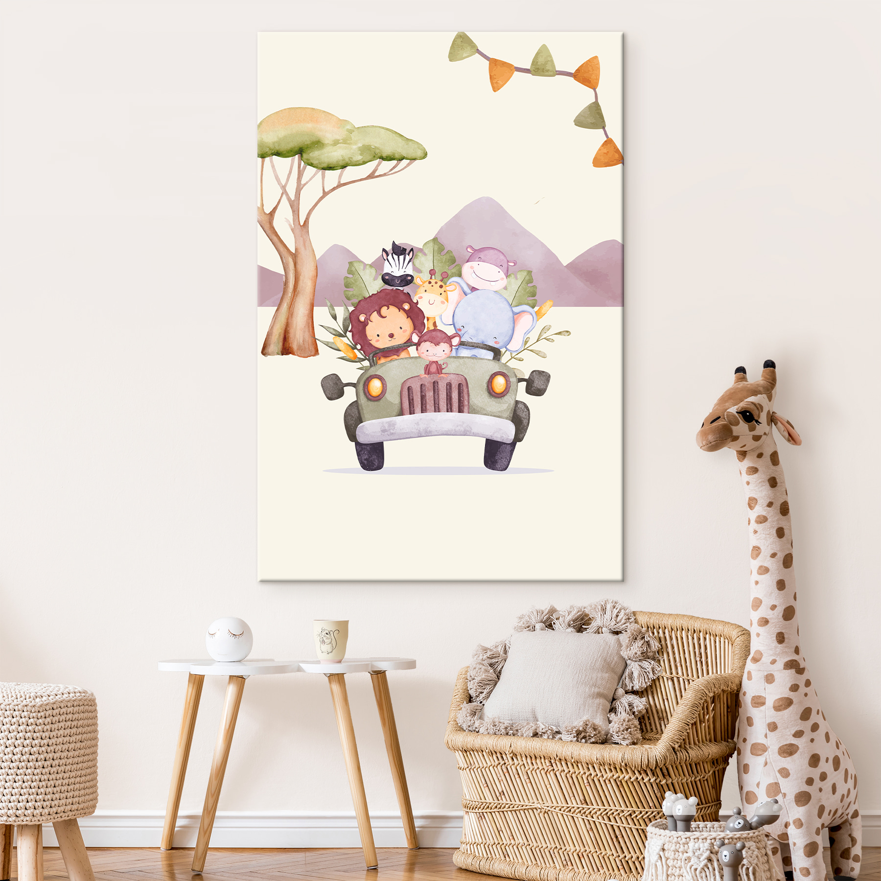 Nu este acesta cel mai drăguț lucru? Acest print pe pânză intitulat “Desen animat al unei zebre” este perfect pentru camerele copiilor sau pentru oricine iubește un strop de fantezie. Imaginați-vă că vă uitați la această scenă jucăușă cu animale adorabile care se plimbă într-un jeep mic – probabil că vă va face să zâmbiți de fiecare dată. Există o zebră, un leu, o girafă și multe altele, toate părând că au parte de o mare aventură. Culorile atenuate și expresiile dulci sunt tocmai bune pentru a crea o atmosferă confortabilă și veselă. Este genul de artă care ar putea deveni cu ușurință un început de poveste preferat înainte de culcare sau un companion vesel pentru acele momente de joacă liniștite. Imaginați-vă-o agățată deasupra unui pat micuț sau a unui loc de joacă – bucurie instantanee! Este ca un mic safari dulce capturat pe pânză, chiar acolo pentru a vă înveseli ziua.