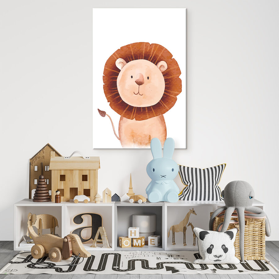 Aruncați o privire la acest adorabil print pe pânză cu leu în acuarelă! Cu coama sa mare și pufoasă, va aduce cu siguranță o notă de fantezie și căldură în orice cameră. Imaginează-ți-l veghind asupra unei camere de copii, făcând-o să se simtă sigură și confortabilă, sau înveselind camera de joacă a unui copil cu chipul său prietenos. Tonurile blânde, de acuarelă, îi conferă acel fler artistic, în timp ce designul simplu îl menține fermecător și accesibil. Perfect pentru iubitorii de animale sau pentru oricine dorește să adauge o notă jucăușă decorului său. Are caracter și o urmă de răutăcioșie în ochi – pariez că abia așteaptă să facă parte din casa ta!