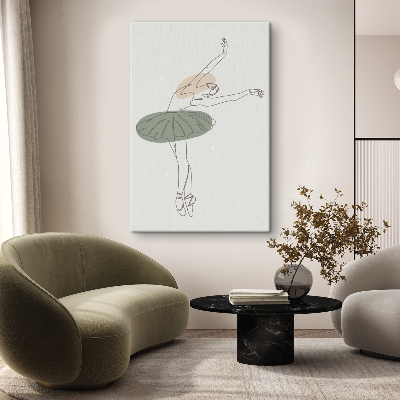 Imaginează-ți oaspeții intrând și oprindu-se în loc, hipnotizați de frumusețea simplă, dar profundă. Această imprimare i-ar putea inspira să înceapă să facă piruete pe loc – ei bine, poate în mintea lor. Modul în care liniile curg și captează mișcarea este atât de liniștitor. Este sofisticată fără a părea snoabă, perfectă pentru cei care iubesc arta, dar nu agitația pieselor prea detaliate.