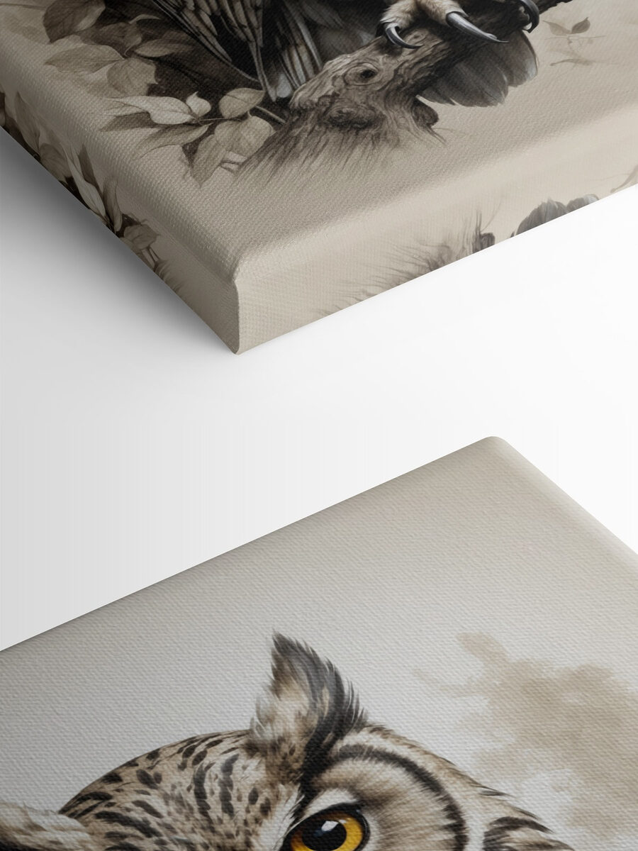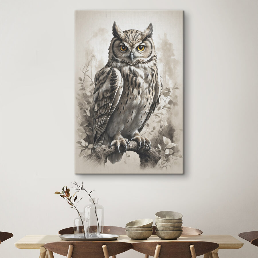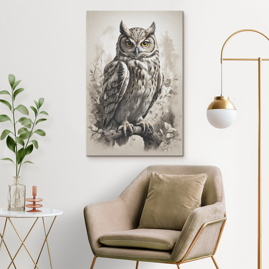 Aruncați o privire la această imprimare uimitoare pe pânză intitulată “Bufniță regală cocoțată în pădure”. Imaginați-vă această bufniță maiestuoasă veghind asupra spațiului dvs. – este ca și cum ați avea un gardian înțelept chiar în sufrageria dvs.! Lucrarea de artă detaliată surprinde privirea pătrunzătoare a bufniței și modelele complicate ale penelor sale, făcând-o să pară aproape vie. Este perfectă pentru oricine iubește o notă de natură și faună în decorul său. Așezați-o în biroul dvs. și s-ar putea să vă simțiți puțin mai inspirat pentru a aborda următorul roman. Poate că înțelepciunea bufniței se răsfrânge asupra ta? Orice ar fi, această piesă va adăuga cu siguranță o vibrație frumoasă și intrigantă oricărei camere.
