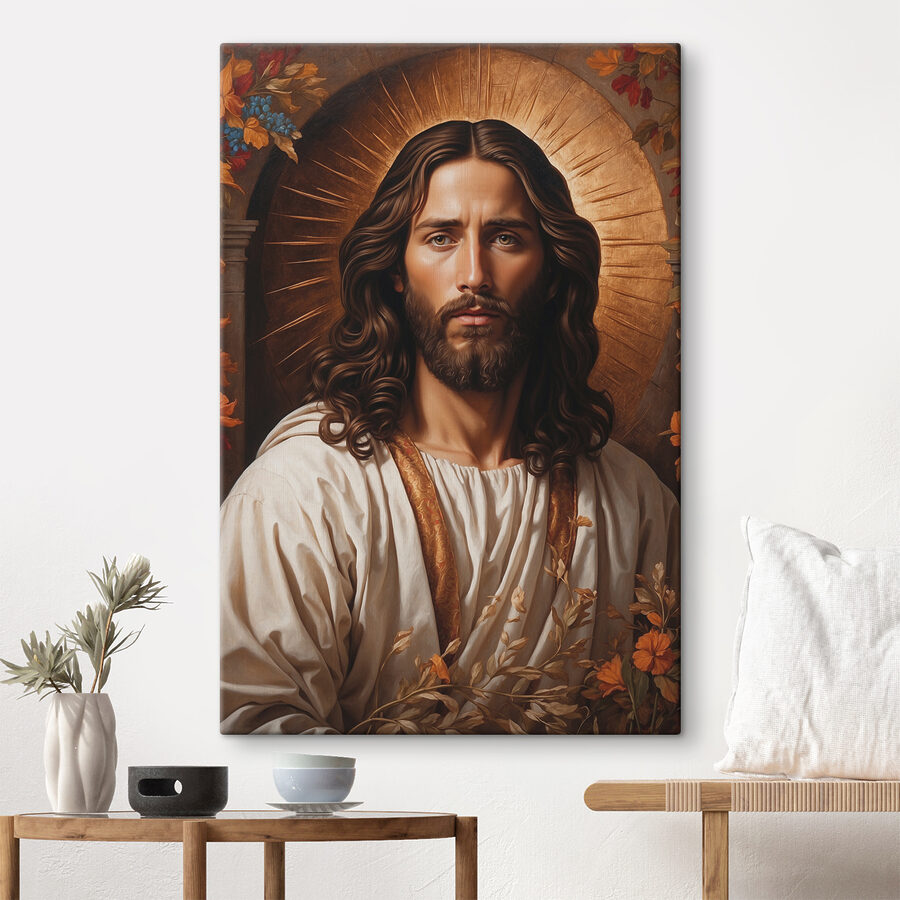 Transformați orice cameră cu această imprimare captivantă pe pânză a unei figuri sfinte care radiază căldură și pace. Este ca și cum ai avea o prezență reconfortantă chiar pe peretele tău. Strălucirea blândă din jurul figurii nu este doar atrăgătoare pentru ochi – te atrage, făcându-te să te simți centrat și înălțat.