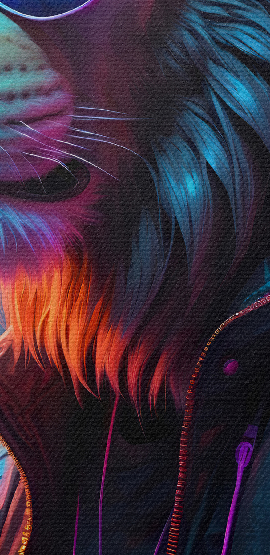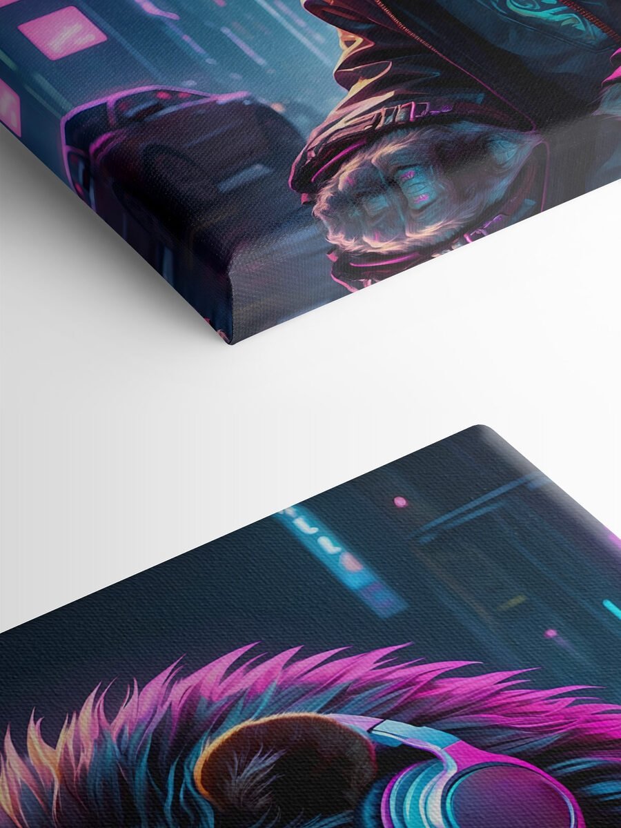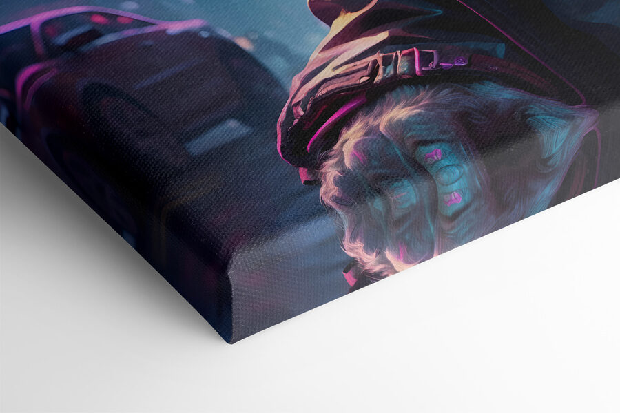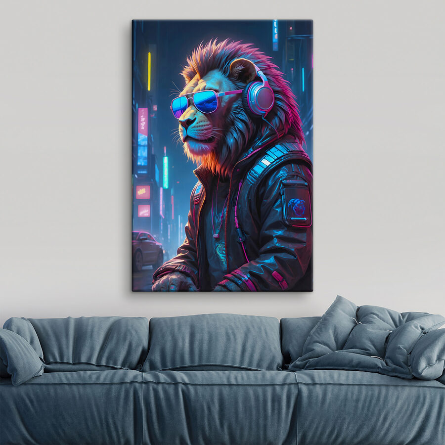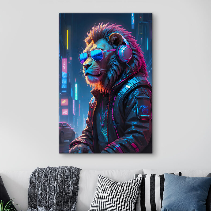 Ați văzut vreodată un leu atât de cool? Această imprimare pe pânză a unui leu care poartă ochelari de soare și căști este pur și simplu prea radicală pentru a rezista. Imaginați-vă că intrați într-o cameră și bum! Iată această bestie regală purtând un echipament urban șmecher – este ca și cum regele junglei a devenit DJ pentru sufrageria ta. Culorile explodează cu vibrații neon, fiind piesa perfectă pentru oricine iubește arta unică și atrăgătoare. Are o atmosferă răcoroasă, de scenă urbană nocturnă, care ar putea condimenta complet un perete plictisitor. În plus, cine nu ar zâmbi văzând un leu atât de funky în fiecare zi? De asemenea, este o piesă excelentă pentru discuții!