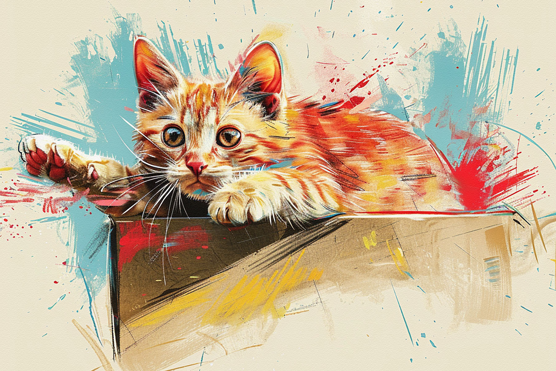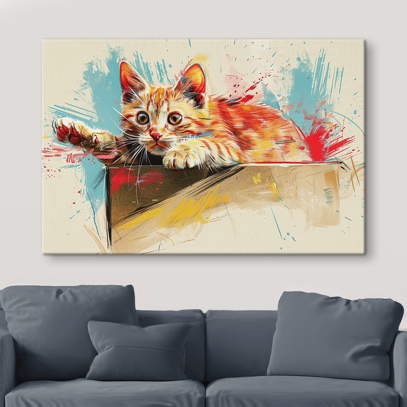 Imaginează-ți asta pe peretele tău: o pisicuță curioasă care trage cu ochiul dintr-o cutie. Este ca și cum pisicuța este pe cale să sară direct în sufrageria ta! Această imprimare pe pânză, intitulată “Pisicuța trage cu ochiul jucăuș din cutie”, îmbină farmecul adorabilei feline cu flerul artistic. Perfectă pentru casa oricărui iubitor de animale – serios, cine ar putea rezista acestor ochi mari și lăbuțe jucăușe? Stropițele vibrante de culoare aduc o energie care poate înveseli orice spațiu plictisitor.