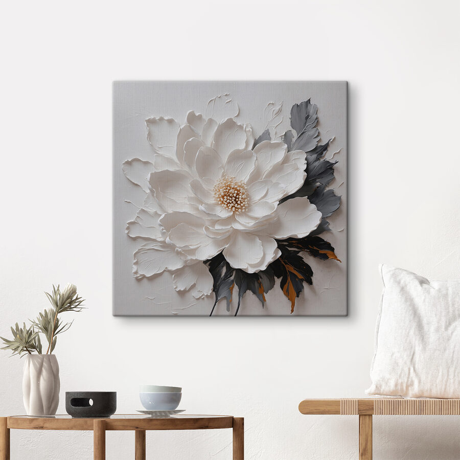 Imaginați-vă că intrați într-o cameră confortabilă și sunteți întâmpinați de această imprimare uimitoare pe pânză a unei flori albe, cu acele petale captivante care aproape par să sară de pe perete. Este ca și cum floarea vă invită în îmbrățișarea sa moale și delicată. Perfectă pentru a lumina un colț plictisitor sau pentru a face o declarație deasupra unei canapele. Imaginați-vă vibrația senină pe care o aduce – este ca și cum camera tocmai a respirat adânc și a suspinat. Prietenii și familia se vor opri cu siguranță și vor admira, întrebând: “Unde ai găsit asta?” O piesă simplă care adaugă fără efort o notă de frumusețe naturală, reîmprospătând orice spațiu și stârnind în același timp conversații încântătoare.