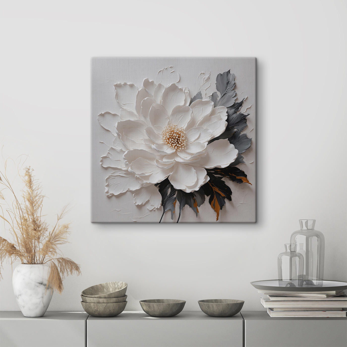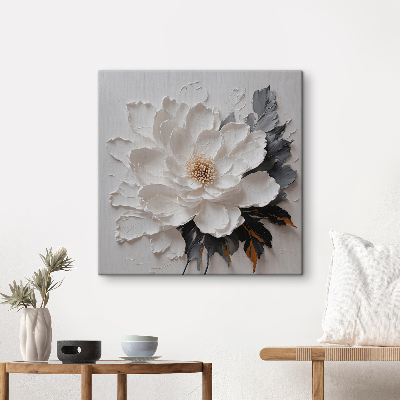 Imaginați-vă că intrați într-o cameră confortabilă și sunteți întâmpinați de această imprimare uimitoare pe pânză a unei flori albe, cu acele petale captivante care aproape par să sară de pe perete. Este ca și cum floarea vă invită în îmbrățișarea sa moale și delicată. Perfectă pentru a lumina un colț plictisitor sau pentru a face o declarație deasupra unei canapele. Imaginați-vă vibrația senină pe care o aduce – este ca și cum camera tocmai a respirat adânc și a suspinat. Prietenii și familia se vor opri cu siguranță și vor admira, întrebând: “Unde ai găsit asta?” O piesă simplă care adaugă fără efort o notă de frumusețe naturală, reîmprospătând orice spațiu și stârnind în același timp conversații încântătoare.