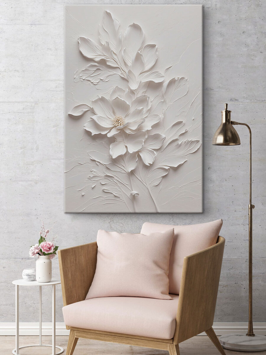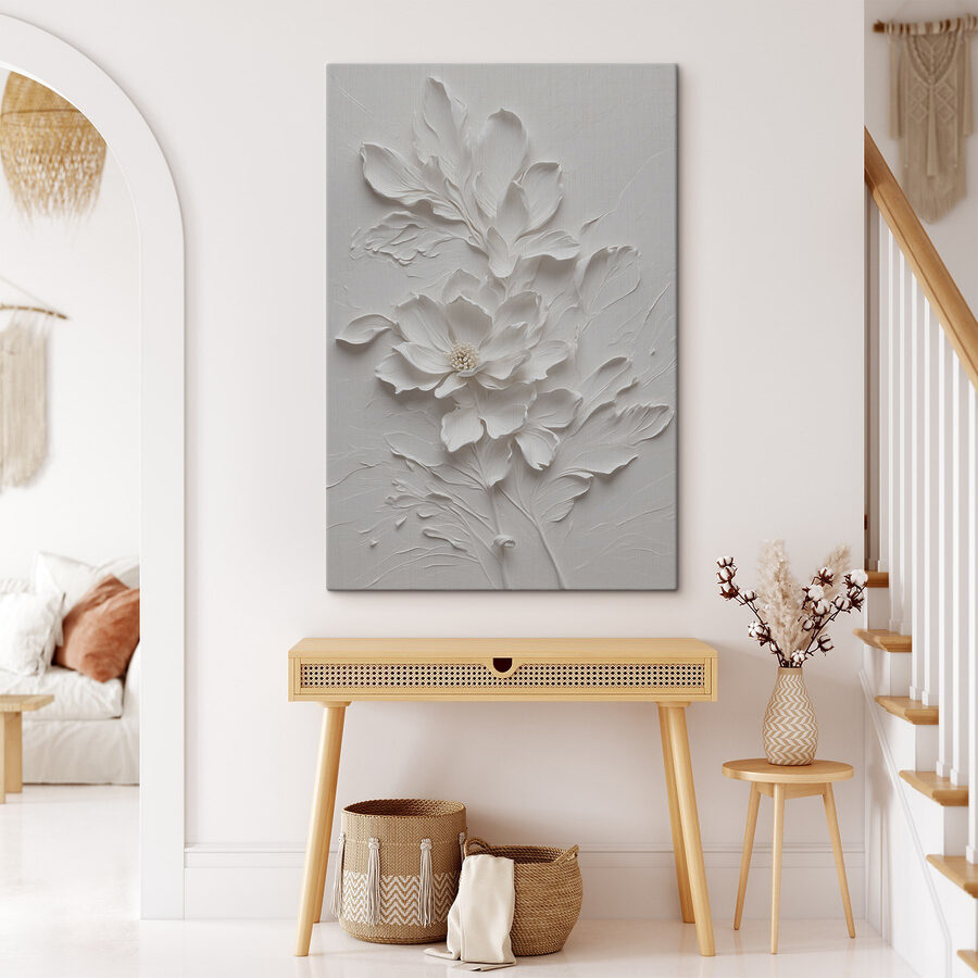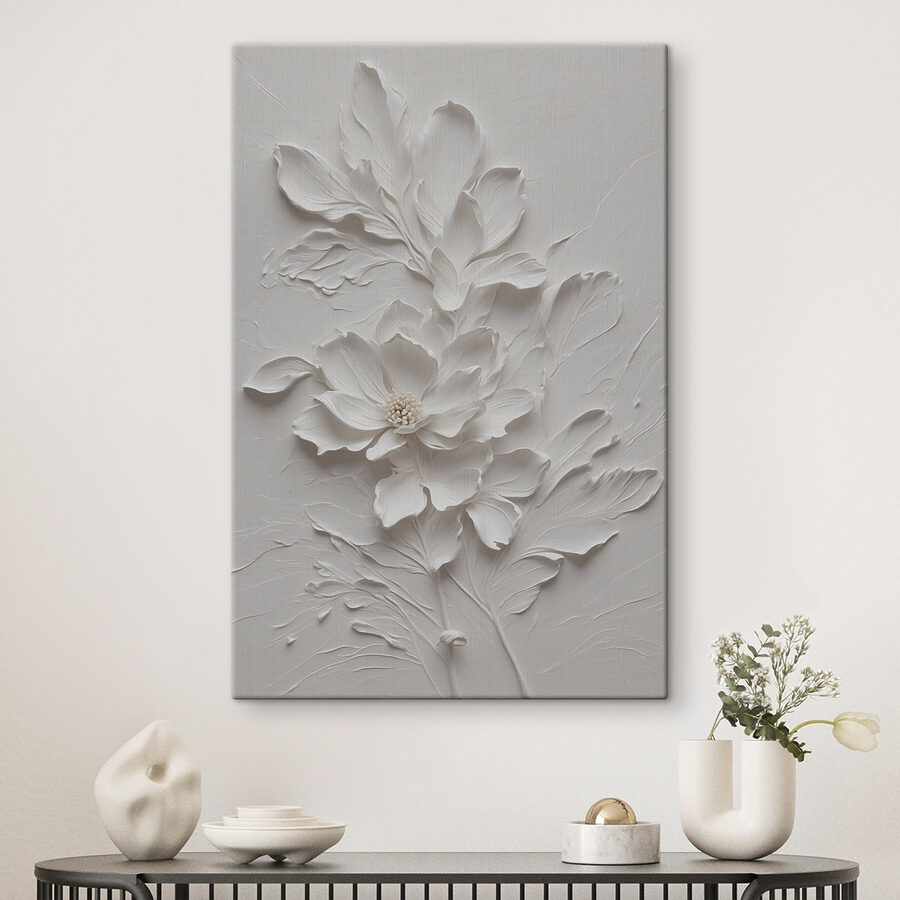 Acest print pe pânză, intitulat “Delicate White Floral Design Artwork”, este un accesoriu uimitor pentru orice spațiu. Imaginați-vă-o în camera dvs. de zi – acele flori moi și complicate aproape că par să înflorească direct de pe pânză! Are această vibrație senină și elegantă care face cumva ca întreaga cameră să se simtă mai liniștită. Perfect pentru momentele în care vă doriți un moment de Zen. Este minunat pentru iubitorii de natură și pentru toți cei care apreciază arta plastică. Te vei trezi uitându-te la ea, întrebându-te cum ceva atât de simplu poate fi atât de captivant. Fie că sunteți un colecționar de artă experimentat sau doar cineva care iubește frumosul, această piesă are talentul de a face fiecare zi un pic mai frumoasă. În plus, este versatilă – se potrivește perfect în orice stil de decor fără să fure lumina reflectoarelor, ca cel mai bun prieten liniștit și încrezător de care toți avem nevoie.
