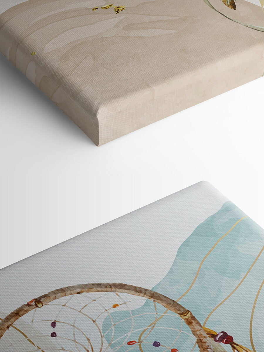 Transformați-vă spațiul într-un refugiu confortabil cu această imprimare încântătoare pe pânză a unui prinzător de vise. Imaginați-vă-l atârnat fără efort pe perete, invitând vibrații bune și vise dulci, adăugând în același timp un strop de farmec boem. Designul acuarelă dansează cu nuanțe blânde, iar penele delicate par aproape gata să zboare într-o briză ușoară. Imaginează-ți cum te relaxezi pe canapea cu o băutură caldă, privind această operă de artă, simțind cum se ridică greutatea grijilor. Nu este doar un decor; este o bucățică de seninătate care șoptește: “Relaxează-te, te descurci”. Perfectă pentru sufragerii sau dormitoare, este ca o îmbrățișare blândă pentru casa ta.