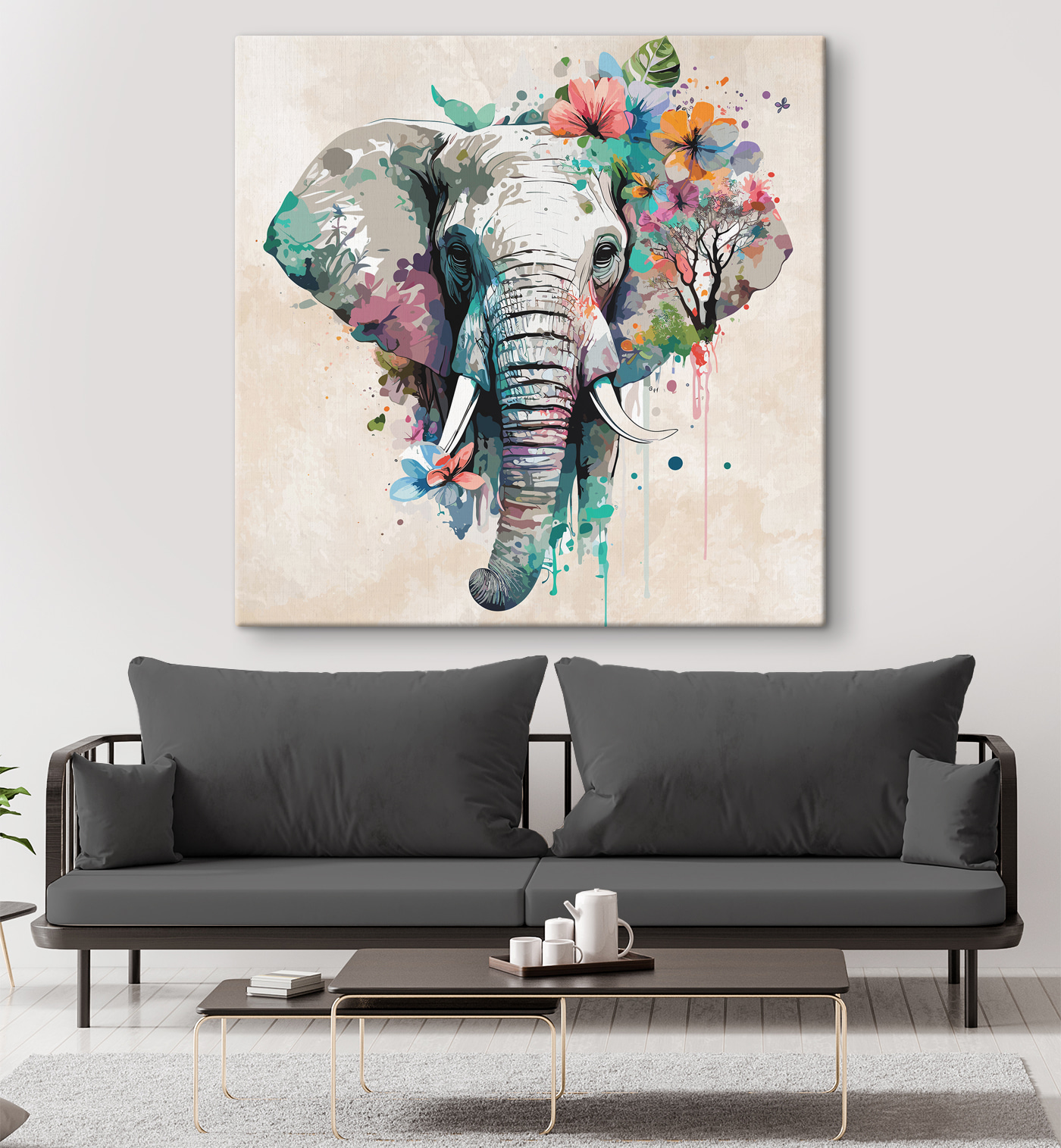 Pășiți într-o lume vibrantă cu această imprimare pe pânză care prezintă un elefant în mijlocul unei explozii de flori colorate. Această operă de artă nu se agață doar pe perete; aduce viață și caracter în orice cameră. Imaginați-vă farmecul calm al elefantului, care captivează inimile în timp ce florile dansează în jurul său, injectând un strop de bucurie în spațiul dvs. Perfectă pentru o cameră de zi sau un colțișor confortabil, stârnește conversații și zâmbete. Fiecare privire aruncată asupra acestei piese vă poate aminti să apreciați frumusețea din simplitate și natură. Este mai mult decât un decor; este o mică felie de minune.