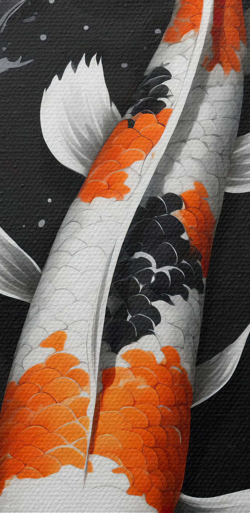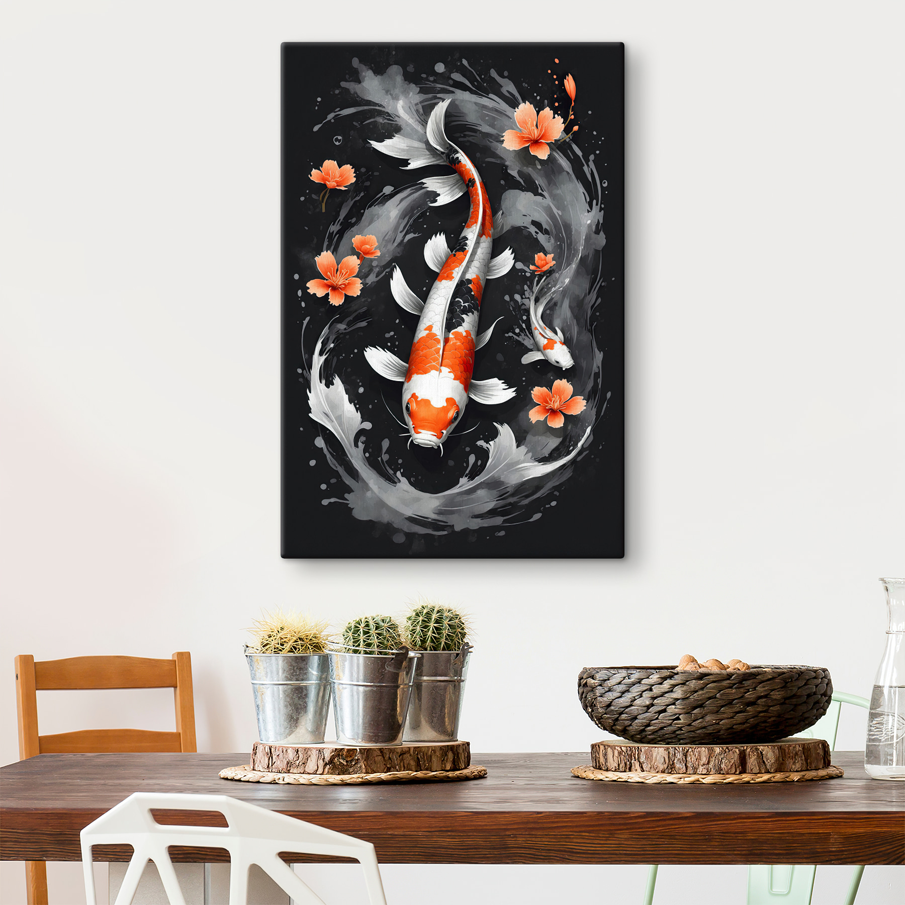 Uită-te la asta – o imprimare pe pânză care este practic un mic portal către o grădină japoneză senină. Se numește “Tablouri Koi fish swim with orange blossoms” și, sincer, are o vibrație magică. Imaginați-vă acești pești koi grațioși înotând prin ape moi, în vârtej, cu flori delicate de portocal plutind în jur – este ca un dans!