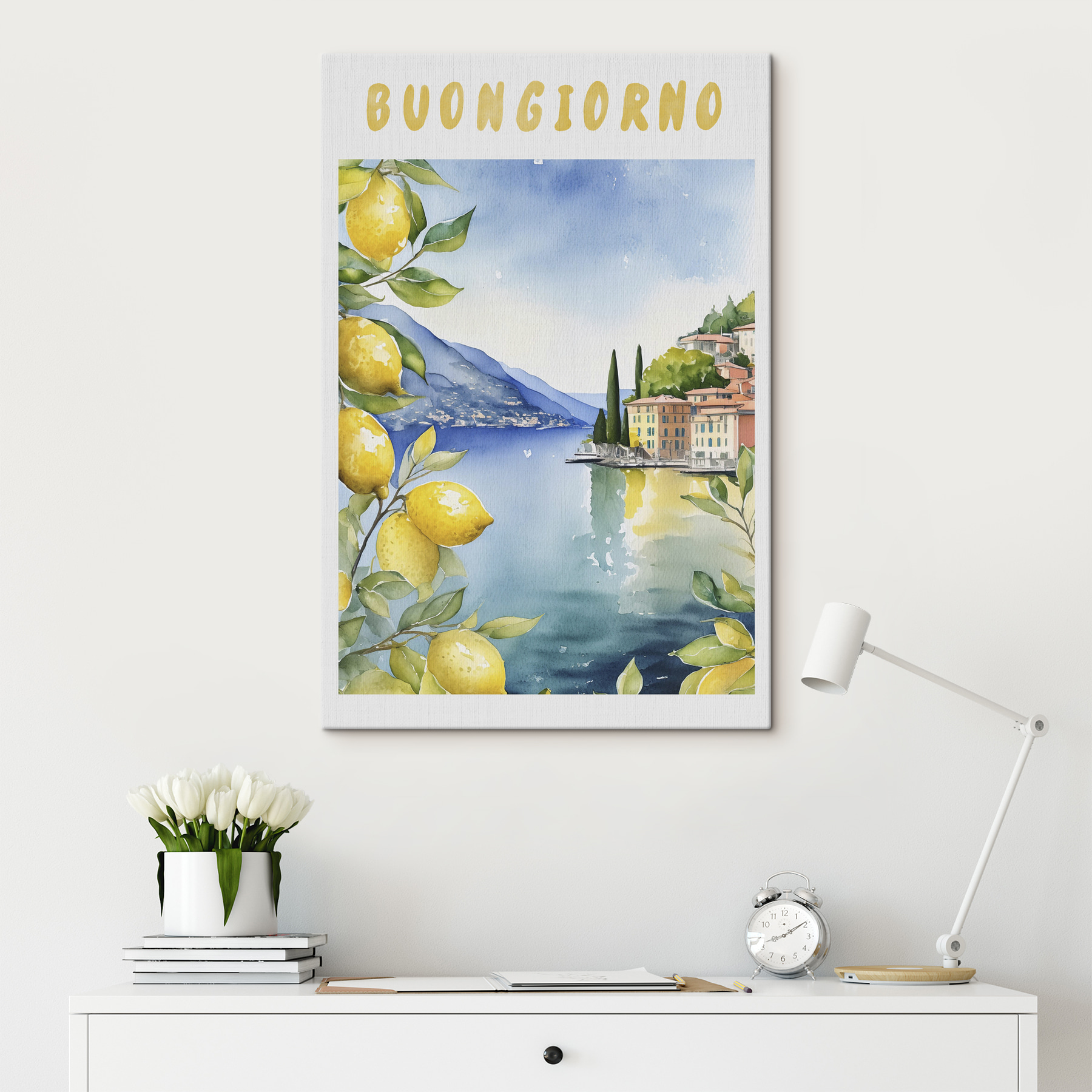 Fie că vă plac peisajele urbane, iubiți mâncarea și băuturile sau doar apreciați arta frumoasă, această piesă se potrivește perfect. Imaginați-vă acest lucru: o dimineață însorită, o briză parfumată cu lămâie (dacă ar fi!) și o atingere de Italia care vă luminează spațiul. Este ca și cum v-ați înfășura într-o îmbrățișare vizuală confortabilă – o ridicare instantanee a dispoziției pentru orice loc!